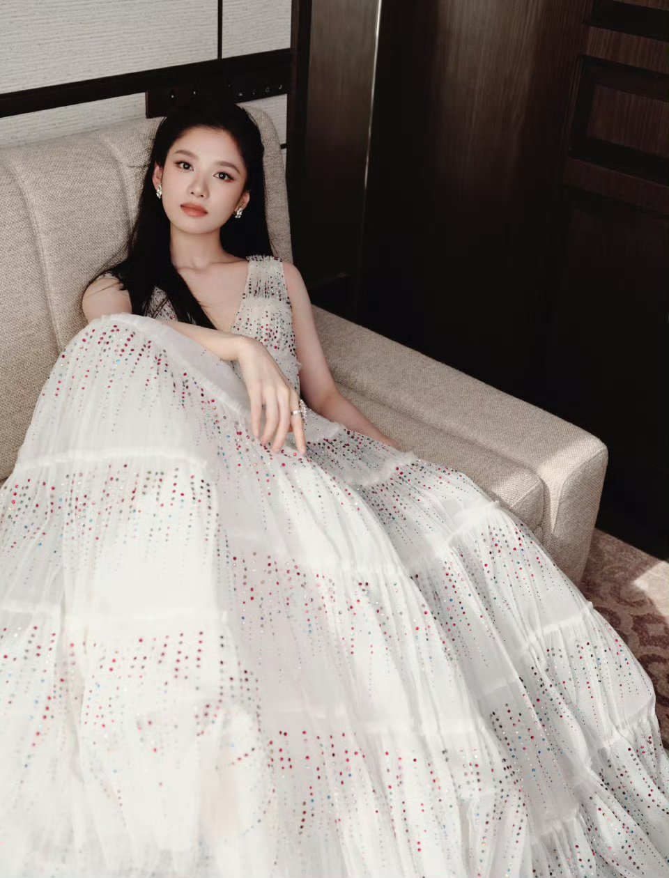 哇,张婧仪这身真的是美到失语!这袭亮片包臀长裙配上她标志性的大波浪,整个人就像刚