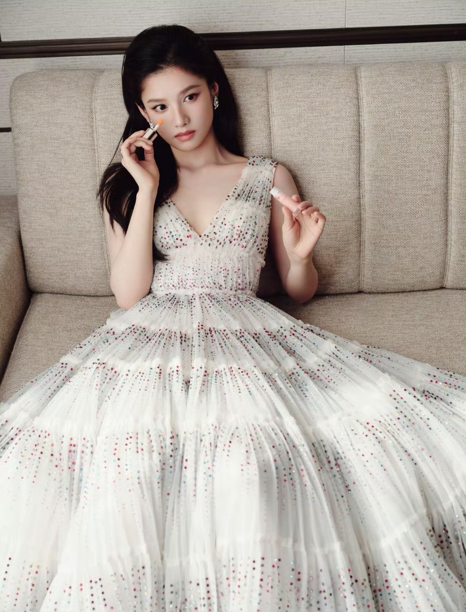 刘亦菲把死亡玫粉穿出了定制款的感觉,这种颜色普通人穿上分分钟黑三度,她居然能穿出