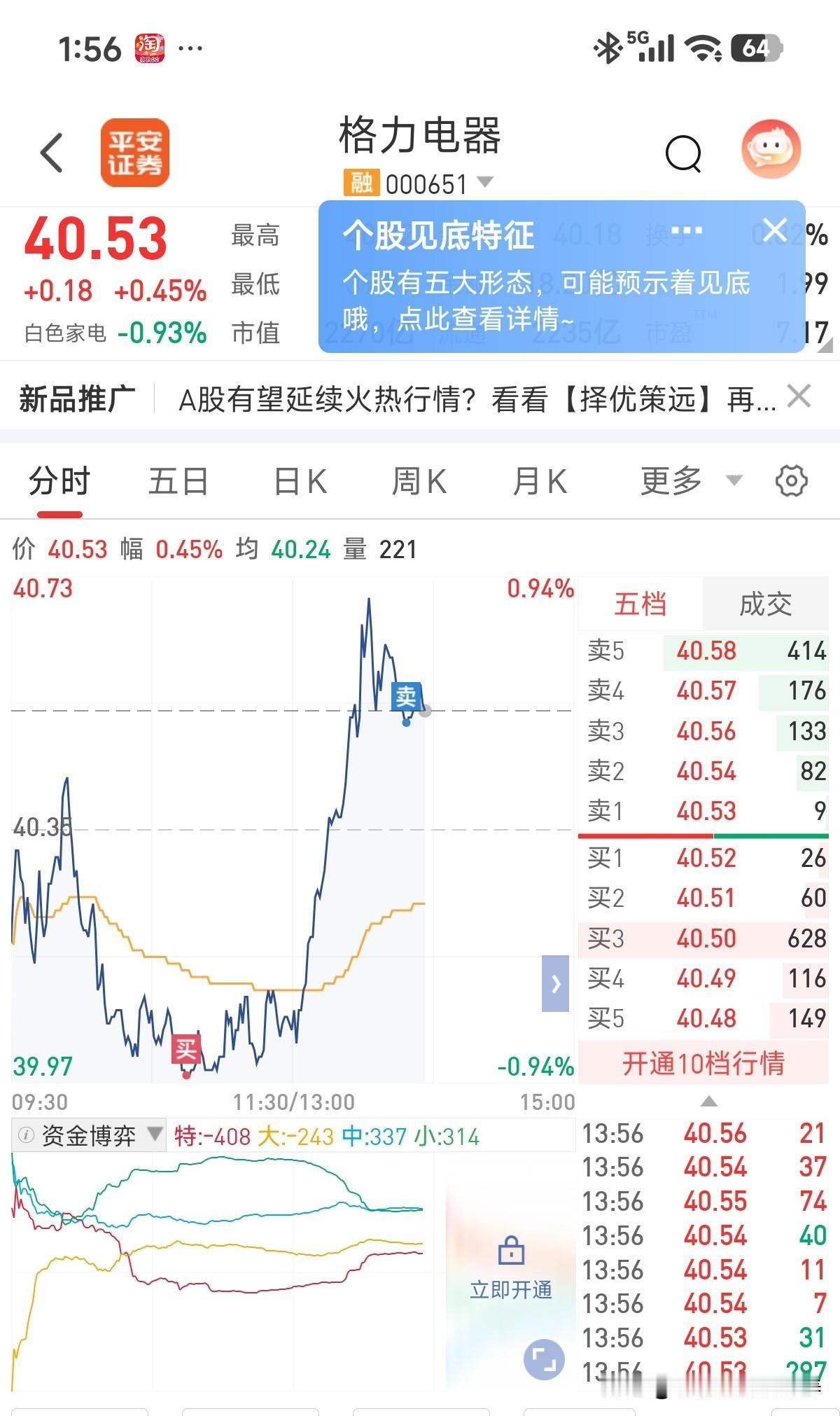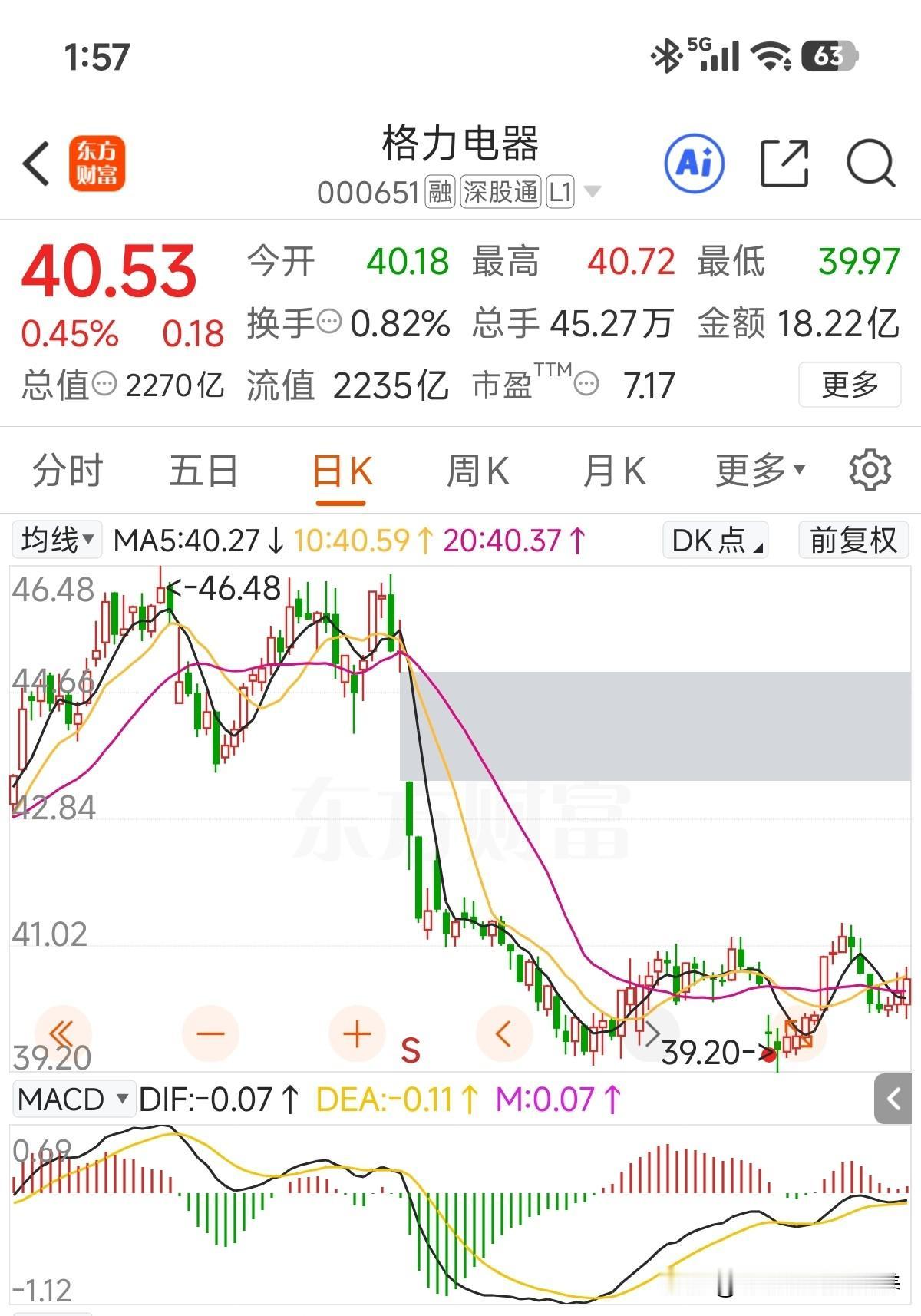 再次成了大盘逆子[呲牙],居然拉红了!之前一直担心还有没40以下的筹码,早盘居然给机会了!冲进去做了个T! 下周一格力电器开股东大会,心直口快的董大妈可悠住点,可别又有什么犀利言辞别个别媒体曲解了!今天这一路调整中,个人账户在格力电器带领下,红盘中[呲牙]手上继续维持8成仓位!
