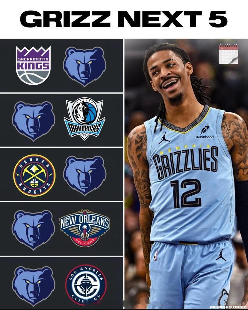灰熊接下来赛程,没有莫兰特,就不看了~