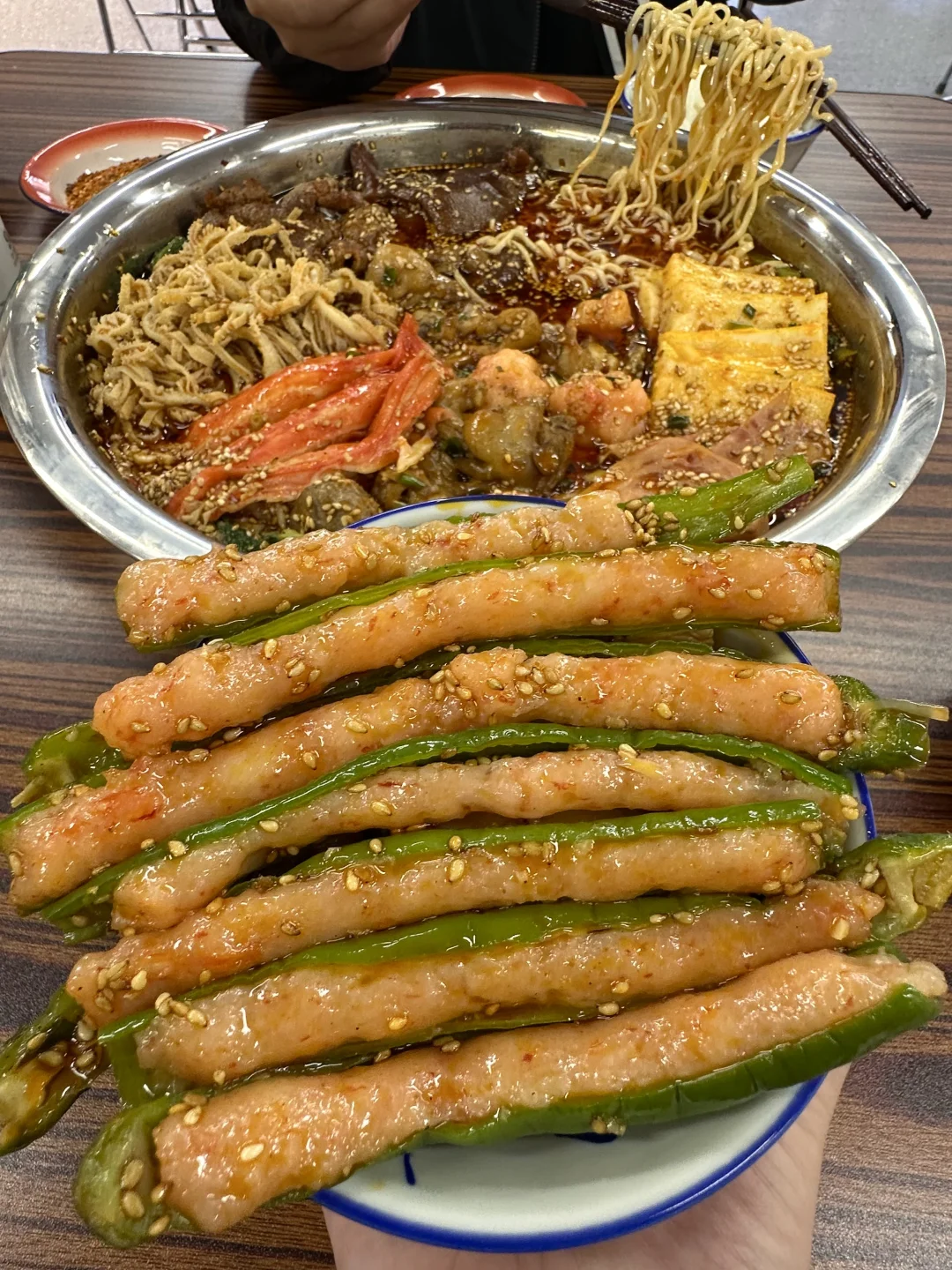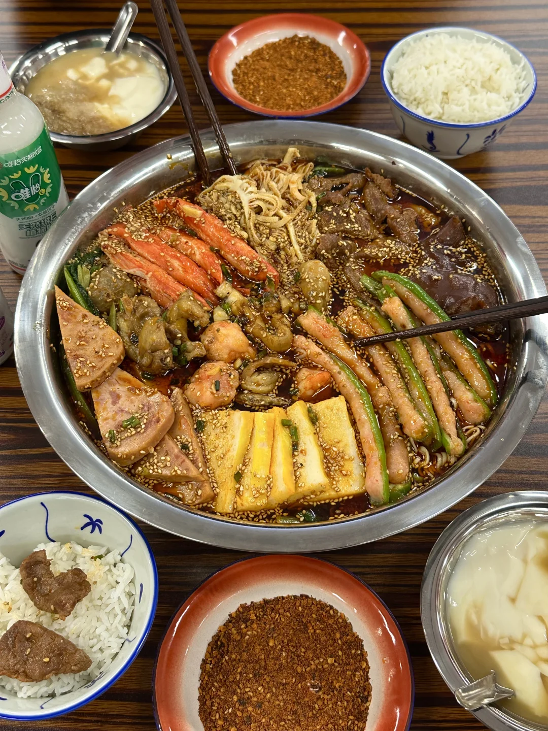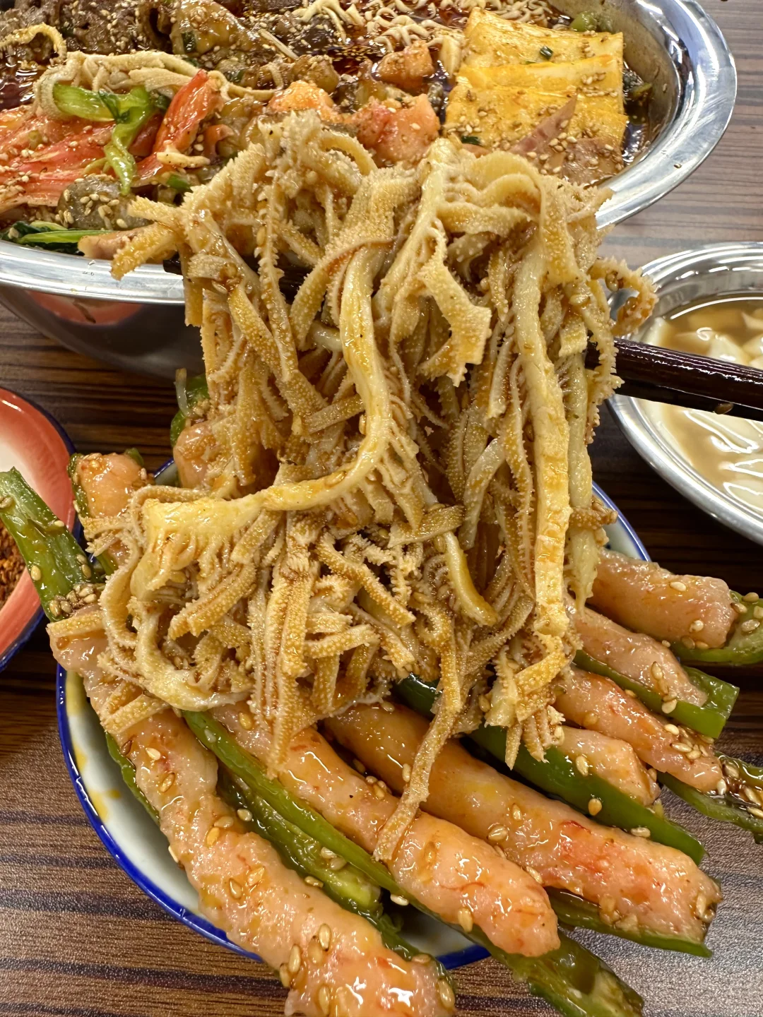 是俺和饭搭子私藏的冒菜小店😭 就在河西奥体附近!!! · 真的很香,不是靠辣,而是靠新鲜的食材和自制的冒菜底料!辣度还可以选择! 每次来都会点青椒虾滑、吊龙、牛蛙、蟹柳、猪蹄、千层肚等!配菜土豆片脆脆的特别好吃! 配菜都是店里自己每天现卤的!推荐+方便面🍜 记得打🆓续的绿豆汤,很解辣 米饭也是无限续,每次去都会干两碗饭! · 📍孔岳冒菜(河西店)