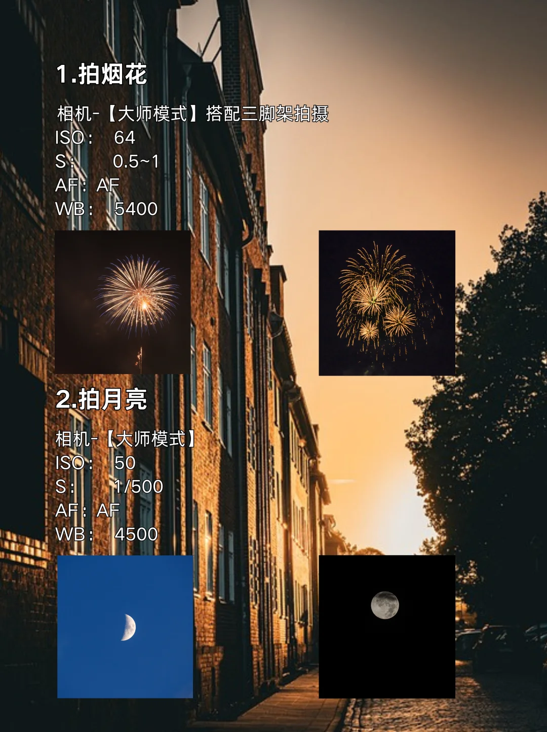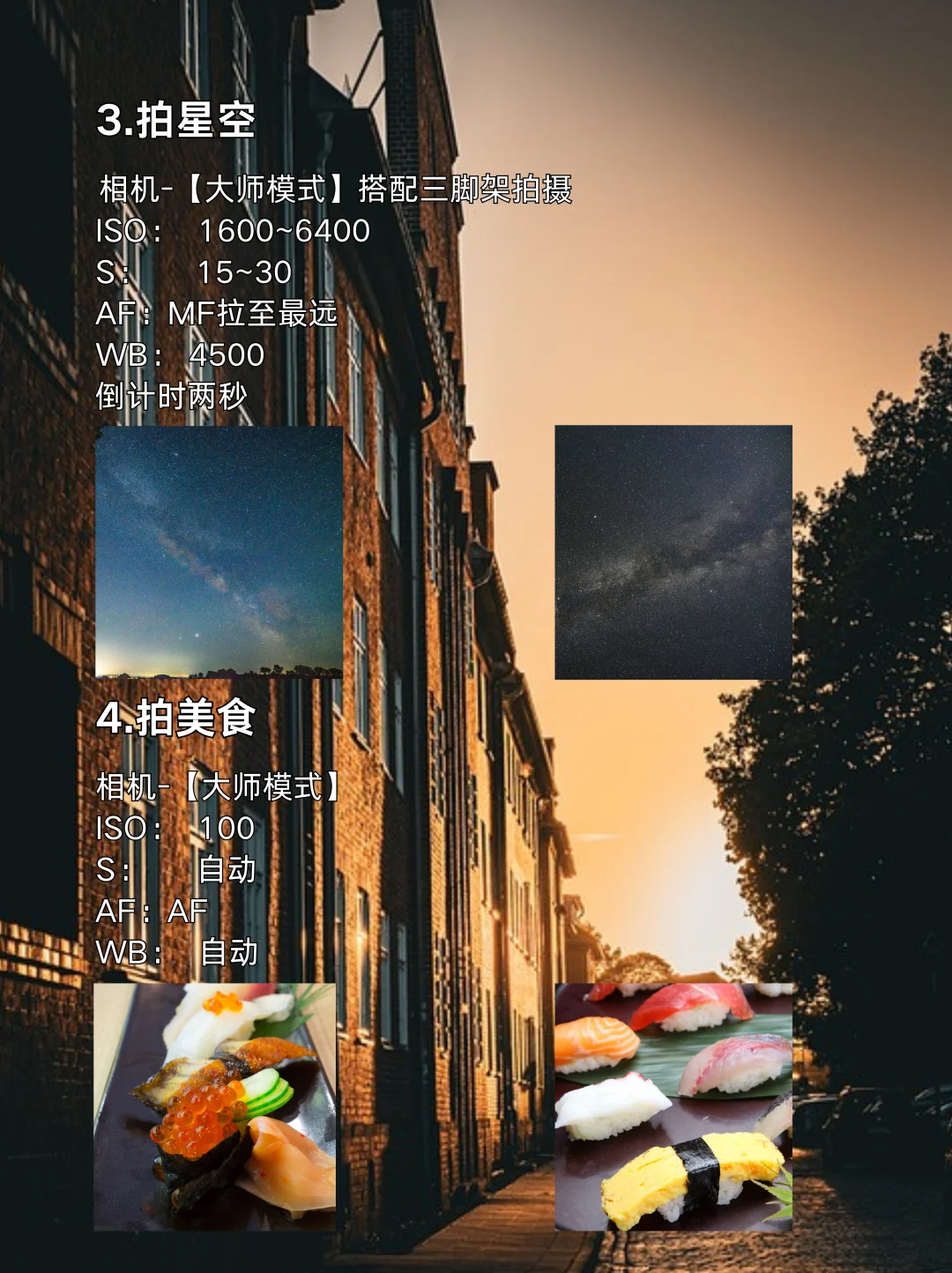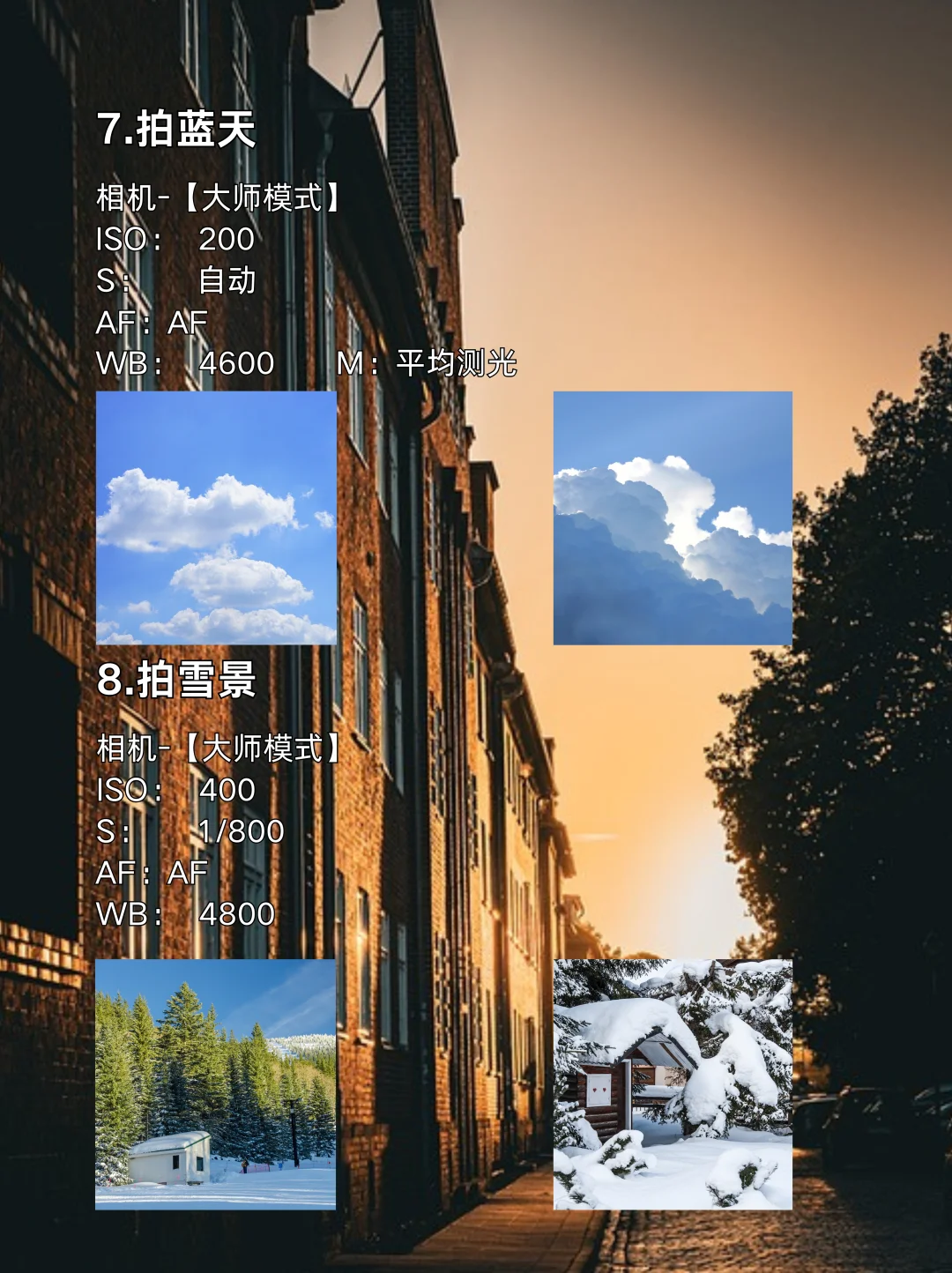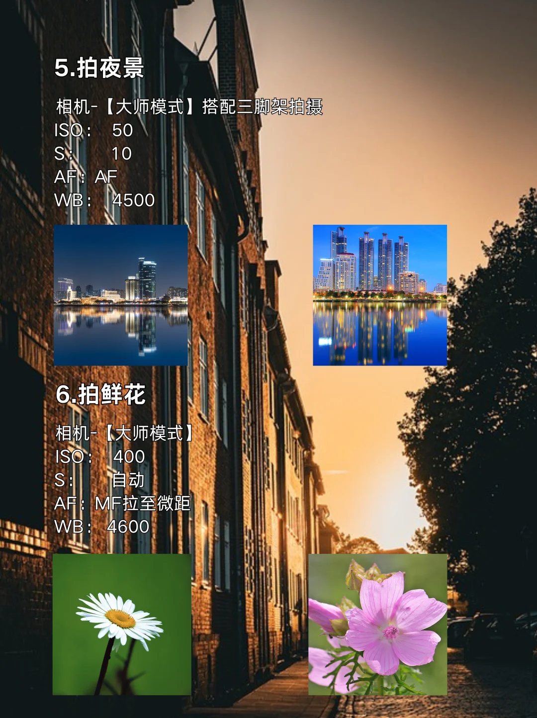 oppo手机拍照模式不会用?学会这12个万能拍照公式,手残党也能拍好看! 注意:这些参数只能作为参考,需要根据现场情况灵活调整