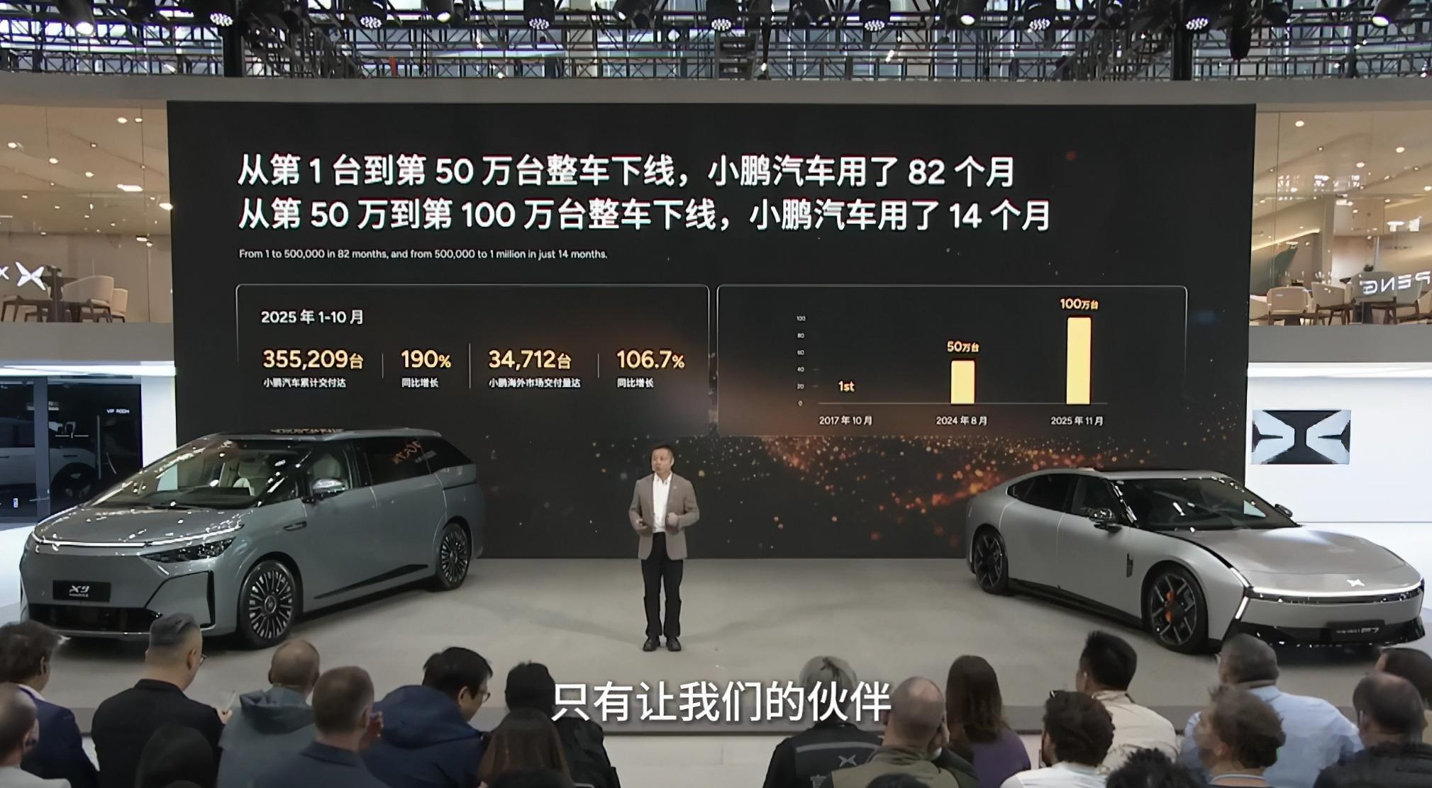 小鹏汽车今天第100万台整车下线。从1-50万用了82个月,但是从50万到100万仅用了14个月。