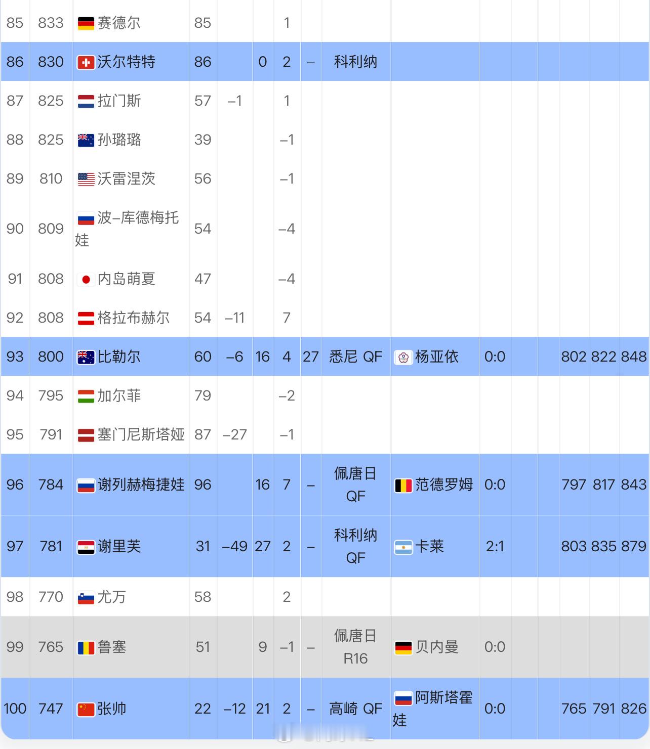🇨🇳张帅即时排名重回Top100如果高崎100K夺冠,排名会来到No.87