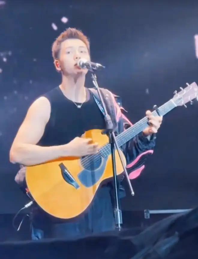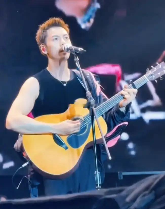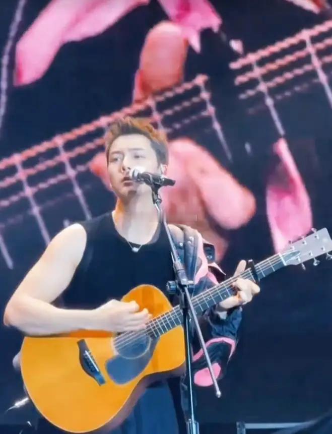 陈伟霆南京音乐节惊喜开唱,半脱外套,穿黑色背心,大秀肌肉