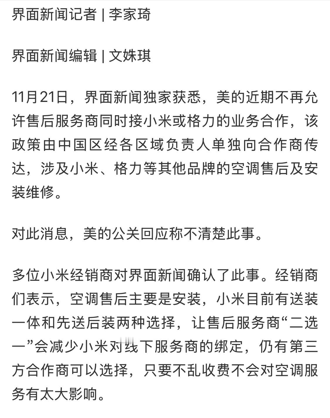 小米确实卖太好了,但还不至于二选一吧?,目前媒体得到最新的回复是,美的公关回应“不清楚此事”。