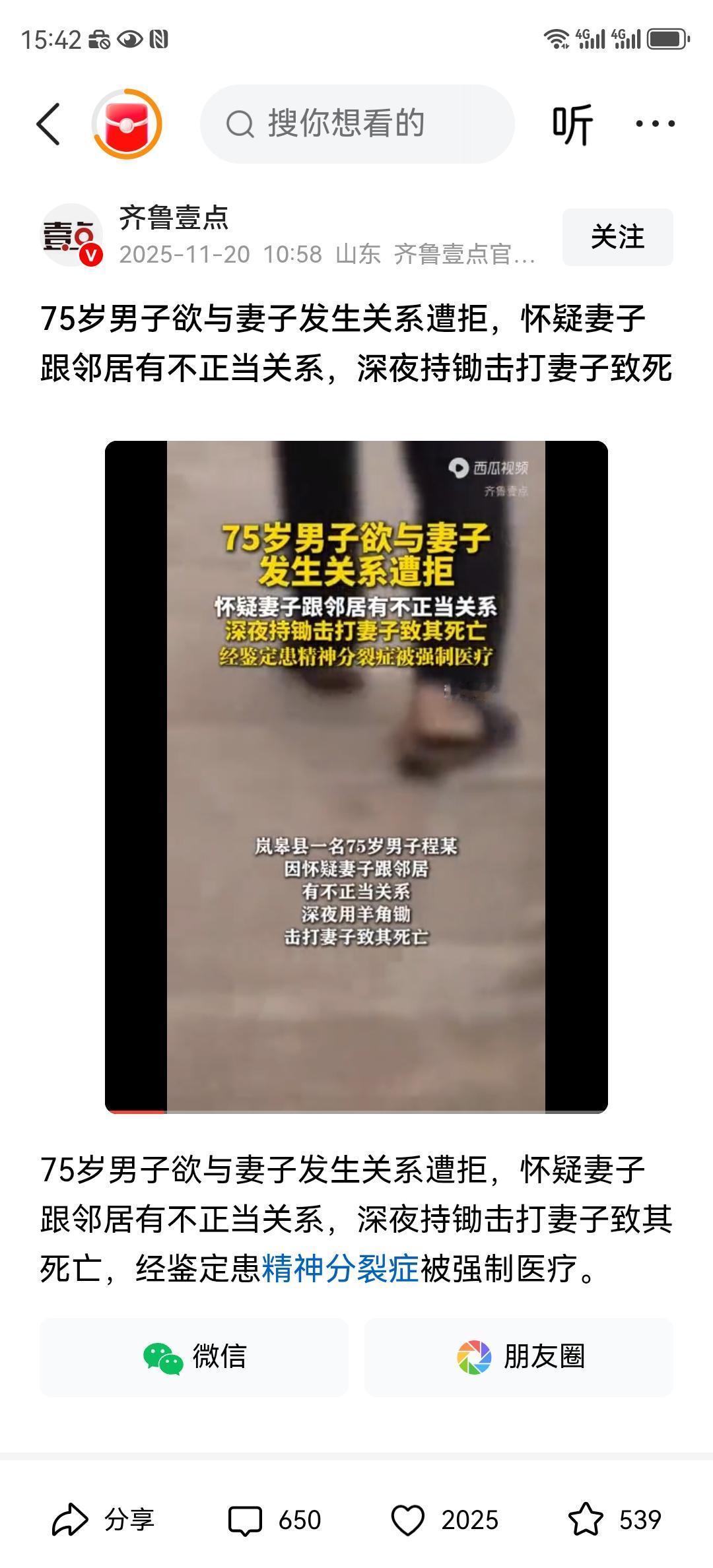 太不思议了,刚刚刷到一个视频,一男人75岁了,还要与妻子发生关系,被妻子拒绝后,
