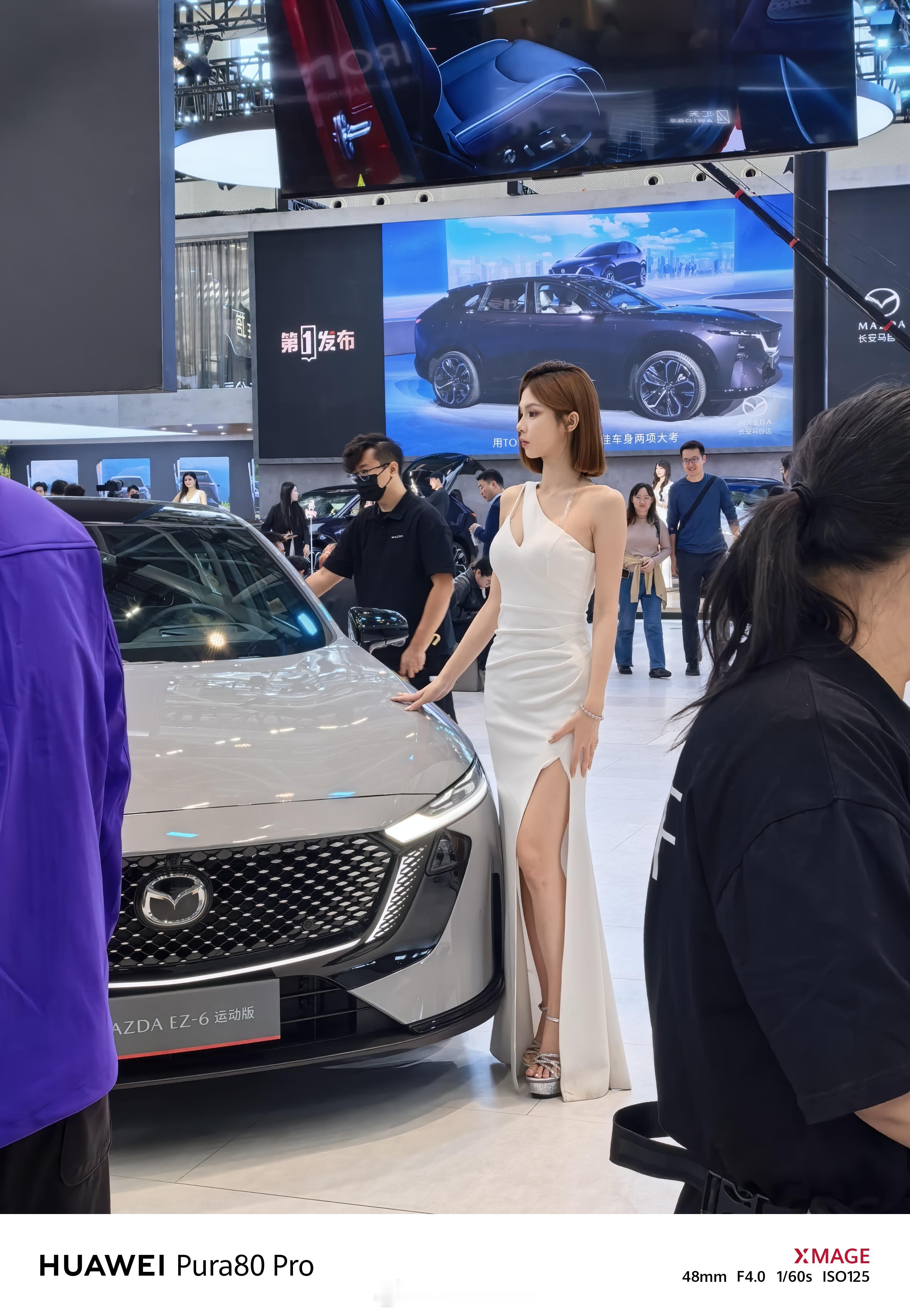 来看看马自达展台吧,展台人气不错,请模特的投入产出比很高。图6 是对面小鹏的模特