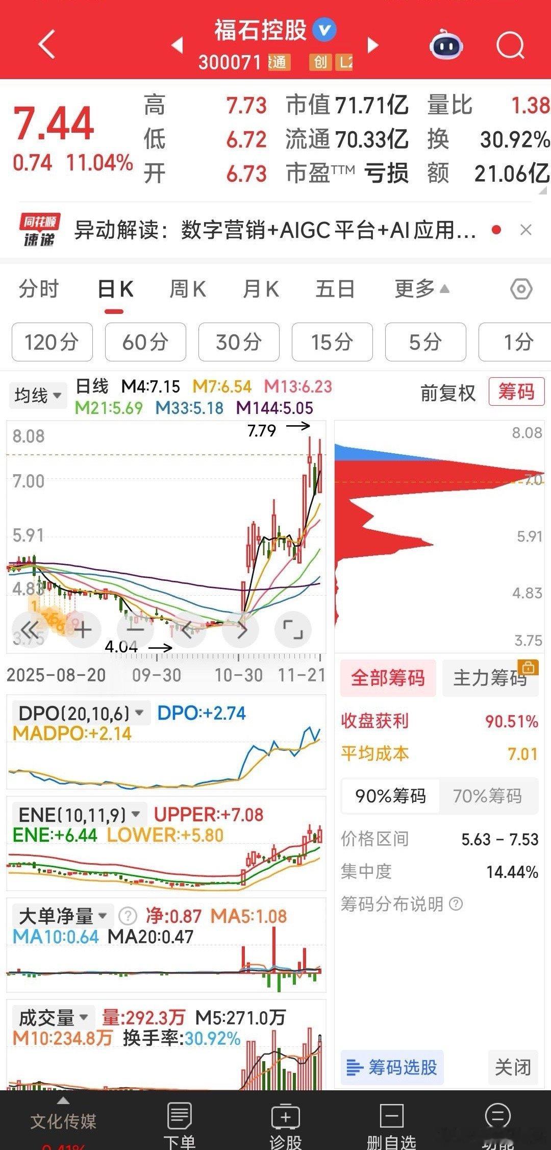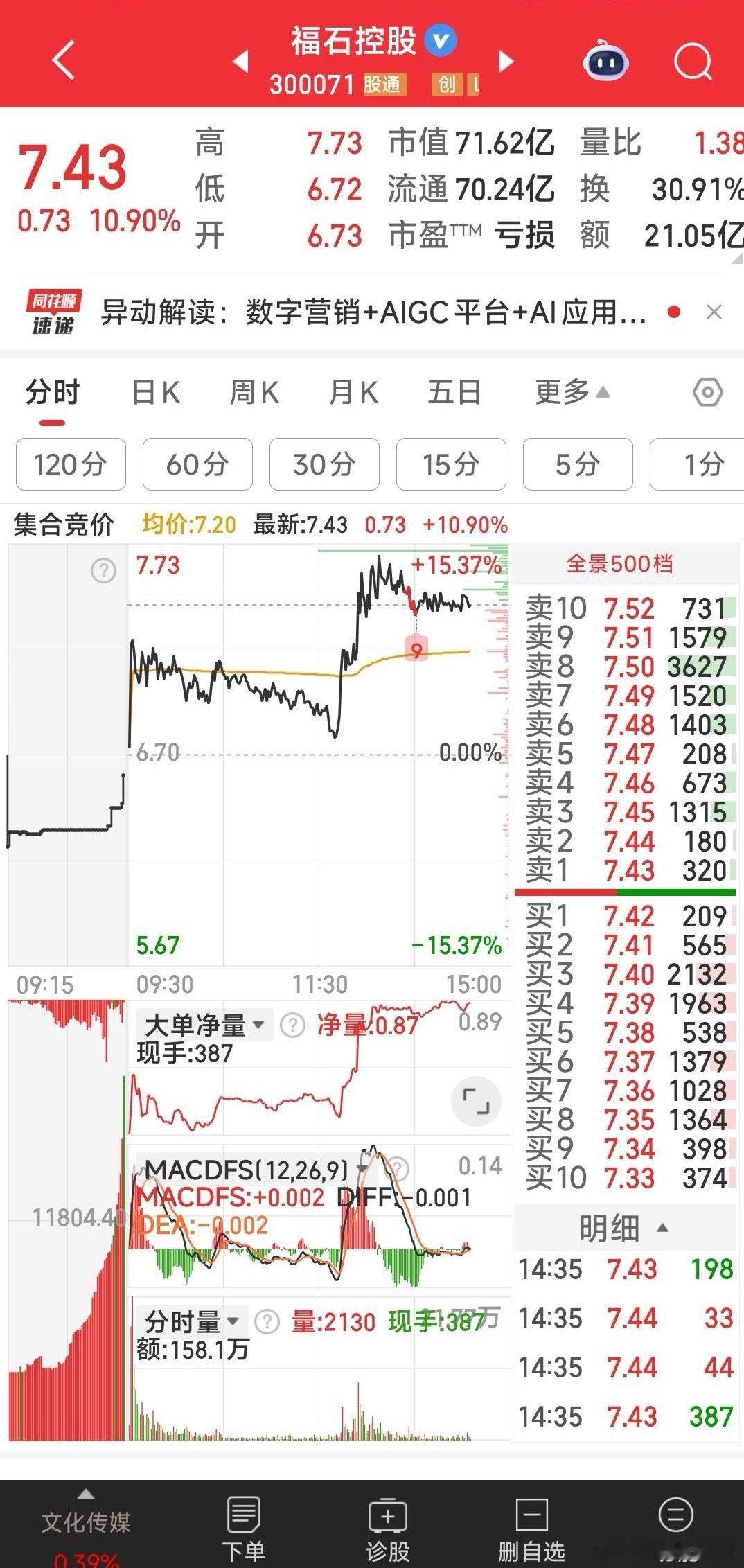大盘大跌时,我又干了福石控股,下午的这波拉升,说明主力也在干他。