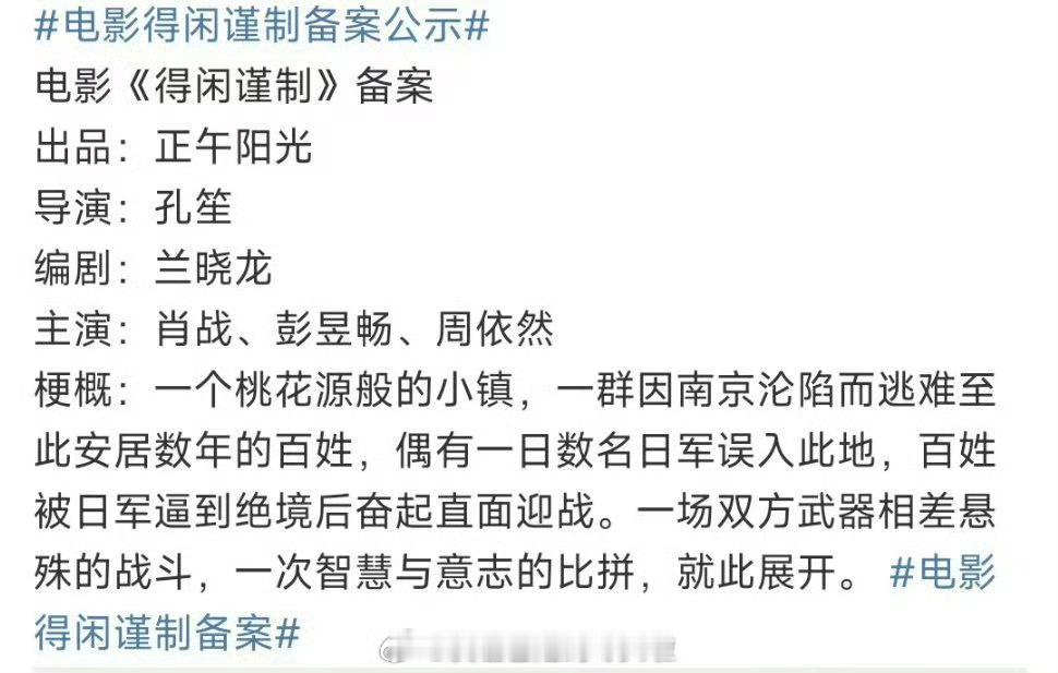 🍉肖战《得闲谨制》电影12月12日上线,官抖已开,故事是讲一群百姓在南京沦陷后与一小队日军遭遇,进行殊死战斗的故事,很适合最近抗日的舆论环境,可以期待黑马吗?