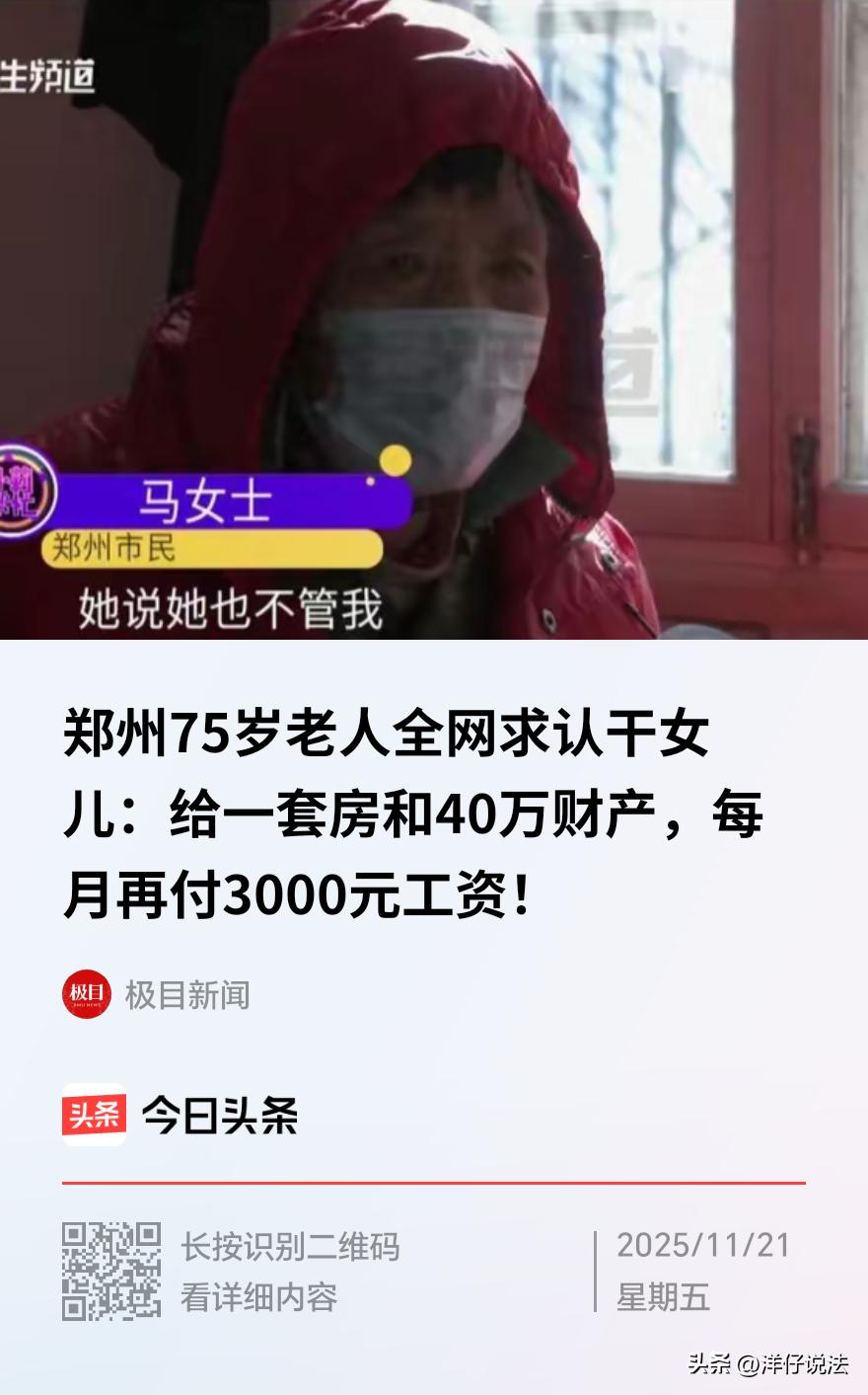 河南郑州,一75岁老人患有严重哮喘,连走到小区门口都喘不上气,独自住在某老旧小区。大女儿声称“不要财产”,欲与她断绝关系。小女儿身有残疾,自身难保。老人曾晕倒在家门口两小时后才被邻居发现,自此担心自己某天悄无声息地离开。无奈之下,老人发布了一个视频,声称:全网寻找一个能陪她说话、帮她买菜的“干女儿”,并承诺将市中心一套两居室和40万存款留给对方,每月还会支付三千元作为照料酬劳,只求一份可靠的照顾与真心的陪伴。老人还特别强调自己脾气很好。 75岁马阿姨的家里,堆满了杂乱的物品,药瓶、旧报纸、未拆封的快递盒。 马阿姨苦笑着说:“走路100米都喘不上气,家里乱得没力气收拾。”哮喘病像一条无形的锁链,将她困在这间两居室的房子里。 每天早上,马阿姨需要花半小时才能从床边挪到厨房,给自己倒一杯温水,吞下几粒药片。 医生叮嘱她“少动多静”,但静下来时,孤独便如潮水般涌来。 马阿姨的人生并非一直如此,年轻时,她在纺织厂工作,是车间里的“一把好手”。后来婚姻破裂,她独自拉扯两个女儿长大。 大女儿去了外地工作,二女儿因先天疾病落下残疾,生活难以自理。 马阿姨说:“那时候总觉得日子有盼头,女儿们成家了,我就能享福了。” 不料,大女儿突然减少了联系,从每周一次电话,到每月寥寥数语,最后连春节都没回家。 马阿姨尝试追问原因,只得到一句冰冷的回应:“你的财产我不要了,我们断绝关系吧。” 至于为什么,马阿姨摇头叹息:“我真不知道……或许是我老了,成了负担。” 二女儿今年40多岁,住在城郊的福利社区,马阿姨曾去看望她,见女儿艰难地扶着轮椅做饭。 马阿姨意识到,二女儿连自己都顾不好,自己去夜市拖累了二女儿。 有一次,马阿姨因哮喘发作晕倒在家门口,幸好邻居及时发现,送她去了医院。 醒来后,马阿姨第一次感到了死亡的恐惧,但哪天倒在路上,连个收 尸的人都没有…… 马阿姨试着给大女儿打电话,对方接起后冷冷道:“我自己没工作,怎么管你?非要逼我成精神病吗?” 第二次通话时,大女儿更是直言:“随便你找干女儿,那是你的东西,我管不着。” 无奈之下,马阿姨联系了记者,尝试找一个可以陪伴自己的“干女儿”。 在镜头前,马阿姨抹着眼泪说:“我不图干女儿多有钱有势,只求她真心对我,陪我吃口热饭、说说话。” 马阿姨提出回报条件:若有人愿意照顾她直至终老,她名下一套闲置房产和40万元存款将作为遗赠,此外每月支付3000元“工资”,作为生活开销和劳务补偿。 此外,马阿姨为了把自己推销出去,还特别强调:“我脾气很好,不会百般挑剔的。” 马阿姨说,她不在乎干女儿是否“完美”,只希望“真心换真心”。 如今,马阿姨仍在等待自己的有缘人。 那么,从法律角度,这件事如何评价呢? 1、大女儿“放弃继承”能否免除其赡养义务? 《民法典》第二十六条规定,父母对未成年子女负有抚养、教育和保护的义务。成年子女对父母负有赡养、扶助和保护的义务。 《老年人权益保障法》第十九条规定,赡养人不得以放弃继承权或者其他理由,拒绝履行赡养义务。 赡养父母法定强制义务,不能因为放弃继承财产这项“权利”,就免除了赡养这项“义务”。 本案中,马阿姨的大女儿虽然明确表示要和马阿姨断绝关系,且不要马阿姨的任何财产,但这并不意味着大女儿就可以放任马阿姨不管,其仍负有赡养马阿姨的法定义务。 大女儿声称“我自己也没有工作”,这同样不能成为合法的抗辩理由。 《老年人权益保障法》第十四条规定,赡养人应当履行对老年人经济上供养、生活上照料和精神上慰藉的义务,照顾老年人的特殊需要。 也就是说,即使大女儿目前没有收入,无法提供经济支持,她仍然负有“生活照料”和“精神慰藉”的义务。例如,她可以经常回家探望母亲。 所以,马阿姨的大女儿负有不可推卸的赡养义务,如果她持续拒不履行,马阿姨完全有权向法院提起诉讼,已维护自身合法权益。 2、马阿姨所谓认一个“干女儿”并承诺提供回报是否具有法律效力? 《民法典》第一千一百五十八条规定,自然人可以与继承人以外的组织或者个人签订遗赠扶养协议。按照协议,该组织或者个人承担该自然人生养死葬的义务,享有受遗赠的权利。 马阿姨提出,找一位“干女儿”来照顾自己,并承诺将“另外一套房产和40万财产给她,每个月再支付3000元工资”,在法律上可以定性为意图订立 “遗赠扶养协议”。 这意味着,一旦有人同意作为马阿姨的“干女儿”,并签署了遗赠抚养协议,则“干女儿”有义务承担马阿姨“生养死葬”的全部或主要责任,包括日常起居、生病护理、死后安葬等。 而在马阿姨去世后,“干女儿”有权利获得协议约定的财产及报酬。 对此,您怎么看?