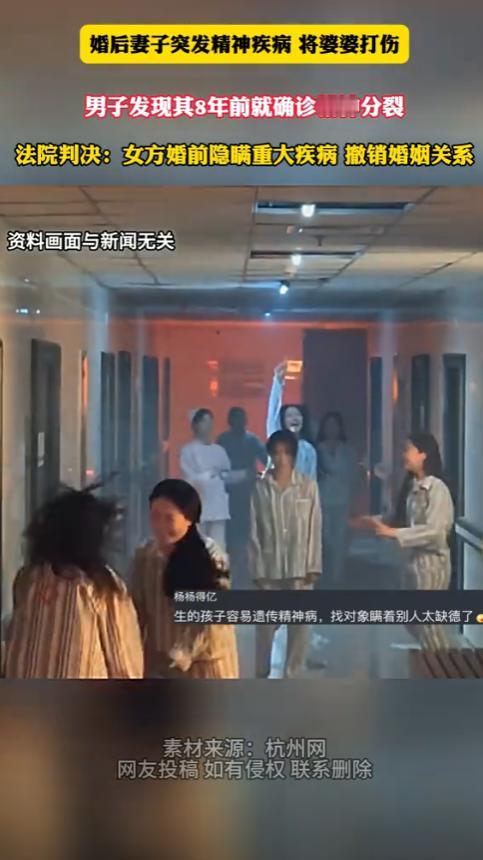 悲剧还是发生了!江苏泰州,一男子和妻子结婚后,妻子突然对婆婆大打出手,两人双双住进医院后,男子却发现妻子竟然隐瞒了自己有重大疾病!他要求撤销和妻子的婚姻关系,法院最终是这么判的。 事情要从2022年说起,泰州的男子通过熟人介绍结识一名女子,不久后,两人走到了一起。起初,他们的感情进展得十分顺利,相识之初,双方相谈甚欢,年龄也相当,这让男子对未来生活充满了憧憬。 然而,在热恋中的人,总容易被感情冲昏头脑。介绍人曾随口提及女子“年轻时好像抑郁过”,但男子并未多想。他坚信,过去的情绪问题不会对未来造成影响,甚至还觉得,对方能够从“抑郁”中走出来,反而是一种坚强的表现。 可是,表面的和谐并不能掩盖深藏其中的隐患。2023年,两人结婚后,生活似乎一切如常。但突如其来的家庭矛盾,揭开了这场婚姻的另一面。 在夫妻俩与男方母亲的一次小摩擦中,女子突然情绪失控,变得异常激动,甚至直接对婆婆动起了手。这场突发冲突让两人双双住进了医院。男子的母亲因伤势严重住院治疗,而女子则因情绪崩溃被送往了精神病院。而一切的矛头,都指向了女子的健康问题。 当保密多年的病历摆在男子面前时,他如五雷轰顶,女子很早之前就已被确诊为“精神分裂症”。精神分裂症是一种可能反复发作且影响生活的重大疾病,其间的突发症状,甚至可能对患者及周边人群构成不可预测的风险。 对此,男子感到愤怒且痛苦。婚姻的基础从一开始就建立在谎言之上。那句轻描淡写的“抑郁过”,到眼下却换成了白纸黑字的确诊病历。知情权被剥夺,让男子感到无比的被欺骗。 隐瞒的背后,却是女子家人的另一番考量。女子的疾病虽然得到一定的药物控制,可精神分裂症本身具有反复发作的可能。家人或许出于担忧,一旦疾病公之于众,不仅女儿的婚姻可能无望,未来的处境也会更加艰难。 于是,他们选择了隐瞒,试图让女子以“看起来正常”的状态结婚成家。然而,事实证明,他们的做法无动于其实际,隐瞒疾病最终不仅没有保护到她,反而将她推上了风口浪尖。 男子一纸诉状将妻子告上了法庭,要求撤销婚姻关系。他认为,婚姻建立在隐瞒和谎言的基础上,早已缺乏合法的正当性。而且,女子的健康状况极有可能影响今后的家庭生活,甚至威胁到家庭成员的人身安全。 他的诉求,表达了自己对这场婚姻的彻底失望。而站在对立面的女子家人,将女儿的心理健康归为一次意外。他们可能认为病情得到了长时间的控制,女儿甚至能够在结婚前正常社交与工作。那么,当问题已经趋于稳定时,隐瞒或许是“不得已”的选择。 精神分裂症属于《婚姻法》中明确列明的重大疾病。根据相关条文规定,若一方在缔结婚姻关系前,因隐瞒重大疾病而造成对方在不知情的情况下结婚,婚姻属于可撤销状态。最终,法院支持了男子的诉求,判定婚姻无效。至此,这段仅维持数月的婚姻,告以终结。 有人替男子鸣不平,认为“明明是婚姻大事,却隐瞒女方健康状况,这就是赤裸裸的欺骗,哪怕感情再好,耍弄别人的知情权,都是不可原谅的。”与此同时,也有声音为女子的遭遇感到惋惜。“疾病从来不是患者本人造成的,她的家人如此隐瞒,显然也是出于无奈。但如此蛮干,最后吃亏的其实还是她自己。” 有人指出,这场隐瞒背后,是对婚姻本质的触碰。在现实生活中,不少人因为身患疾病或者家庭经济问题,在婚前选择隐瞒。他们担心暴露自己的缺陷,会面临孤独一生的风险。 然而,婚姻作为家庭设立的起点,其内核从来都是坦诚与信任。一个谎言不仅构成欺骗,更打破了两个人对未来愿景的共同期待。毕竟,婚姻并非可以隐藏弱点与隐患的场所,对重大问题的避而不谈,常常成为对信用的最大挑战。 这位女子与男子的结合从一开始似乎就埋下伏笔,双方缺乏深刻的了解。一句轻描淡写的“抑郁”,加之男子的疏忽与家人未敢直言的隐瞒,让生活的负面性日积月累到巨变的临界点。由此可见,婚前了解对方的状况,不仅是唯一负责任的选择,更是对彼此未来的保护。 这个事件也为社会中每一个渴望组建家庭的人提了警示:婚姻不是儿戏,一段感情的维系并不是单单依赖爱情,更需要清楚地认识到双方的现状,关注重大问题,避免在不完整的基础下冒然前行。疾病绝非婚姻的障碍,但当事人以及家人必须明白,坦白远比隐瞒更容易为未来留下一条退路。 坦诚相待既是为对方负责,也是给予自己机会的体现。因为,不管婚姻还是生活,终究都无法长久地在谎言中扎根。 信息来源:郑州播报2025-10-23——女子婚前隐瞒重大精神类疾病,婚后打伤婆婆!法院:撤销婚姻..