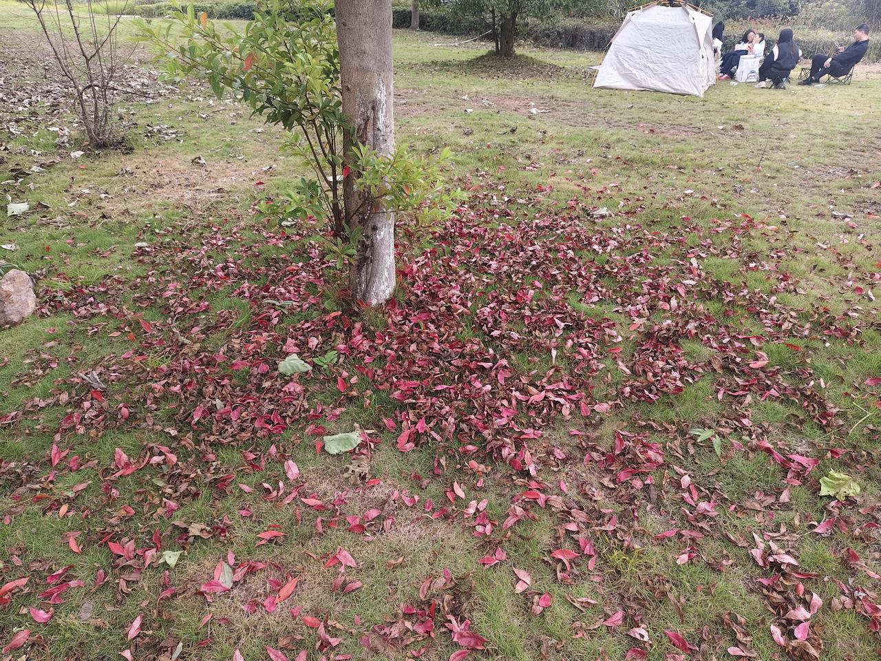 深秋的风,轻轻掠过这片草地,将一树的红叶撒向大地,仿佛大自然用画笔在草地上铺就了一张五彩斑斓的地毯。阳光透过稀疏的枝叶,洒在那些飘落的叶子上,红的、黄的、橙的,交织成一幅温暖而柔和的画面。 我坐在这片红叶铺就的草地上,静静地看着远处的小帐篷里,几个人围坐在一起,似乎在分享着美食和笑声。他们的身影在秋日的阳光下显得格外温馨,仿佛这一刻的美好被定格在了时光里。 脚下的红叶发出沙沙的声响,像是在诉说着季节的故事。我捡起一片红叶,它的颜色如同晚霞,细腻而鲜艳。我将它夹在书页里,想把这份秋日的温暖永远保存下来。 深秋的美,不在于它的繁华,而在于它的宁静与深沉。它让我们在忙碌的生活中停下脚步,去感受自然的馈赠,去珍惜与家人朋友共度的时光。这片红叶铺就的草地,是大自然给予我们的一份礼物,提醒我们在喧嚣中寻找一份宁静,在忙碌中享受一份悠闲。 愿我们都能在这个深秋,找到属于自己的那份温暖与宁静。