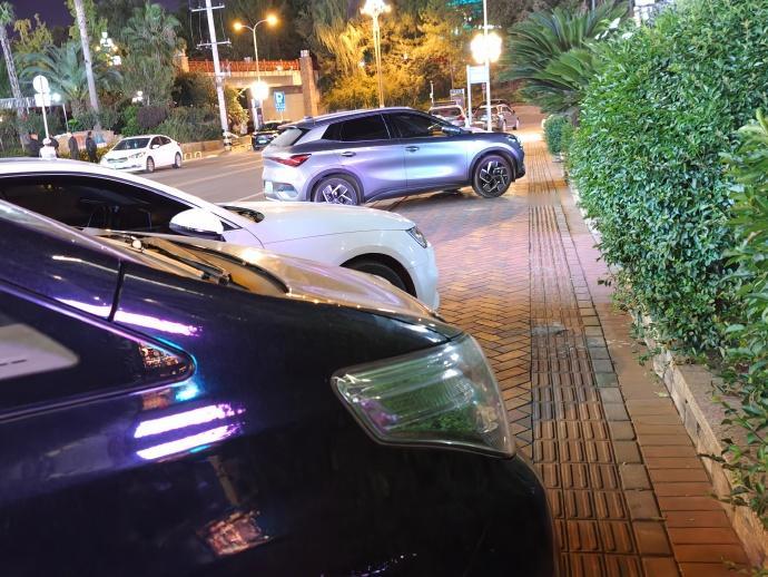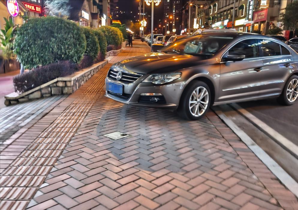 说:广元万龙路段旁边有两个地下停车场和路边线停车位,这几个车偏占用人行道、人行斑