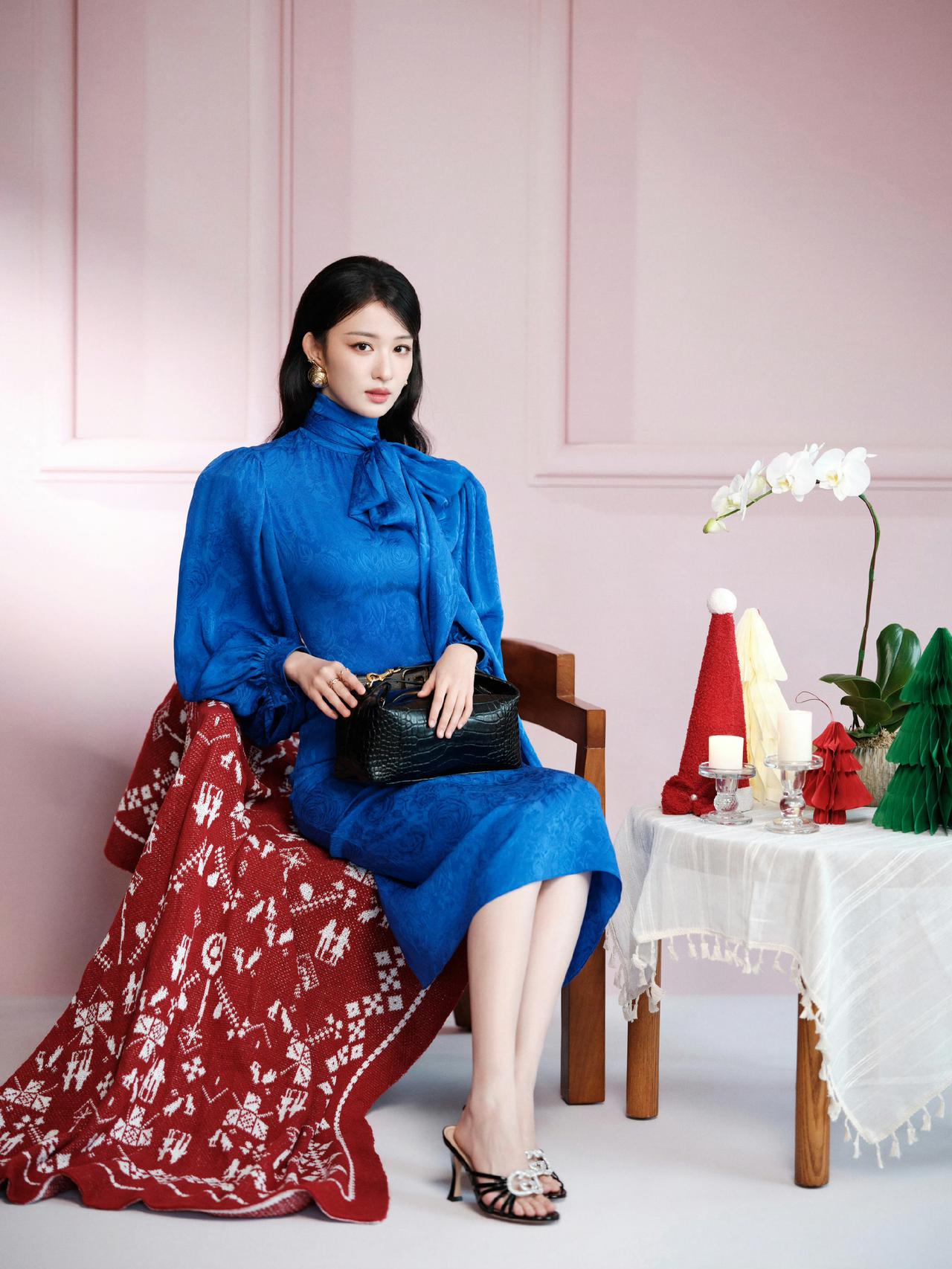 刘亦菲把死亡玫粉穿出了定制款的感觉,这种颜色普通人穿上分分钟黑三度,她居然能穿出