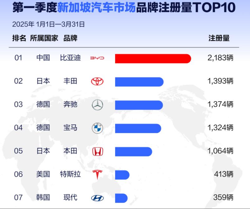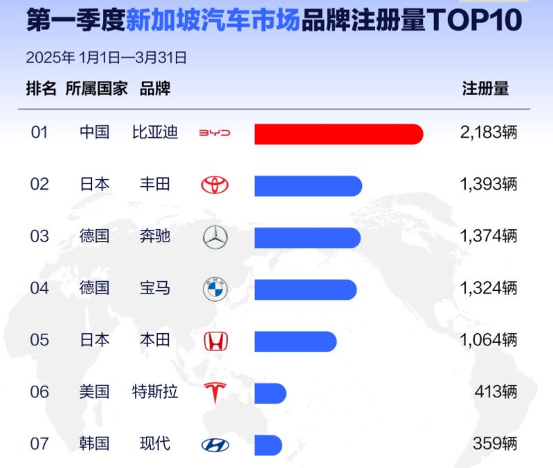 2025年第一季度,比亚迪在全球多个市场获得“销冠” 凭借新能源技术上的优势,这两年比亚迪不管是在国内的汽车赛道还是海外的赛道,都取得了非常辉煌的成绩单!可以说现在的比亚迪确实是新能源汽车品牌的风向标。 在2024年,比亚迪的全球销量达到427万辆,继续蝉联全球新能源汽车销量冠军。其中出口量为43.3万辆,同比增长71.8%,增速位列中国汽车品牌第一。 2025年一季度,比亚迪成为中国香港、新加坡的全品牌销量冠军! 同时也在全球多地市场销量霸榜!在巴西、意大利、泰国、澳大利亚,比亚迪是一季度新能源销量冠军,在英国,比亚迪一季度销量同环比增长均排名第一,今年一季度,比亚迪在全球重点市场均有不俗的销量表现! 截至2025年4月,比亚迪新能源汽车出海足迹已覆盖全球六大洲,累计112个国家和地区,这一成绩的背后,是比亚迪在技术创新和全产业链布局上的持续投入。