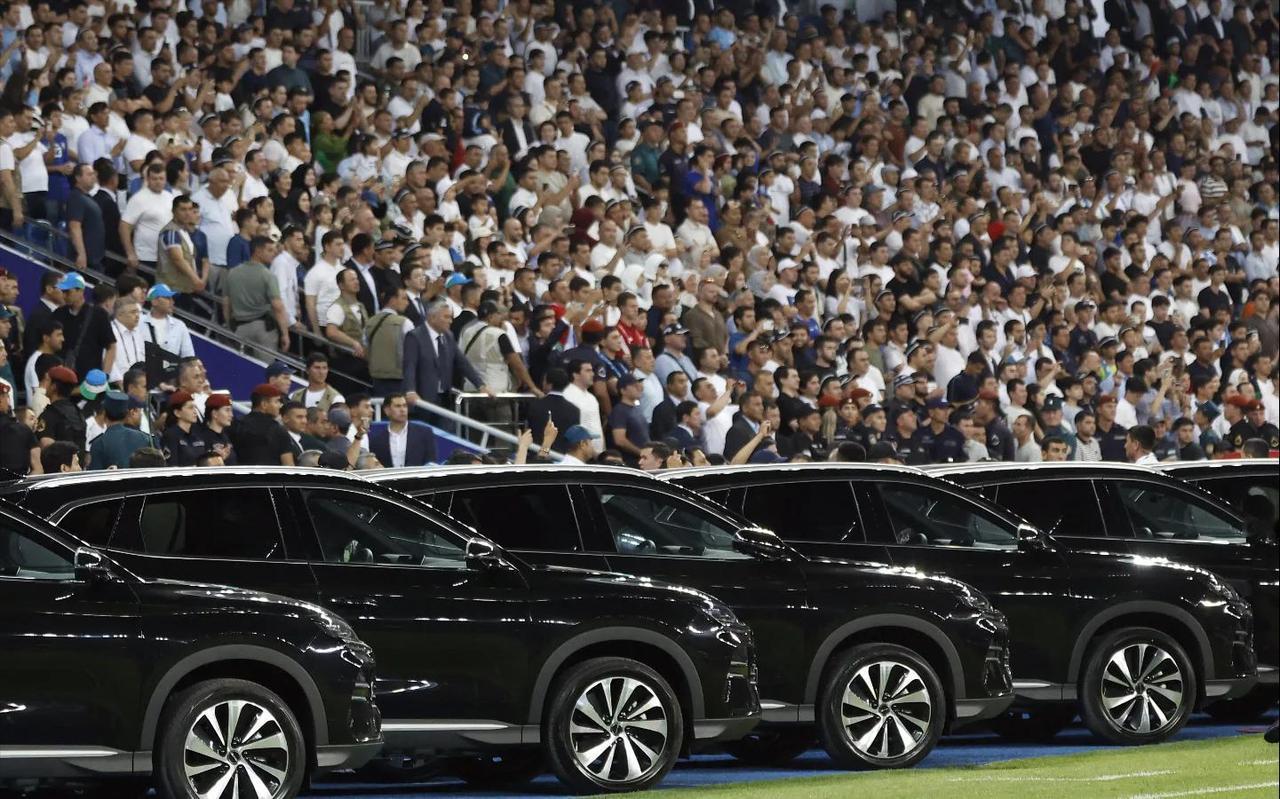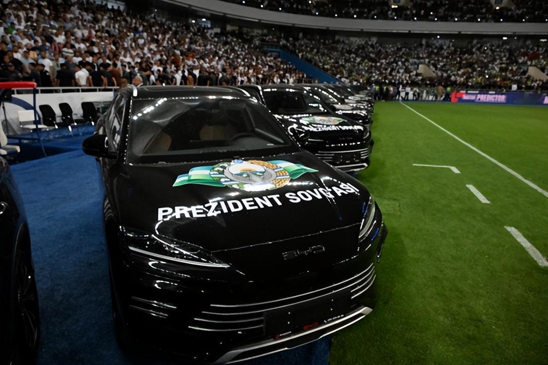 首次打入世界杯,乌兹总统豪赠42台比亚迪汽车! 北京时间 6 月 10 日晚,乌兹别克斯坦队在 2026 年世界杯预选赛最后一轮比赛中 3:0 击败卡塔尔队。此前,他们已提前一轮历史性首次晋级世界杯正赛。为纪念这一里程碑时刻,乌兹别克斯坦总统米尔济约耶夫现场观看了比赛,并且在赛后向国家队成员颁发 42 台比亚迪汽车,包括 28 台比亚迪宋 PLUS DM-i 冠军版及 14 台 BYD CHAZOR (驱逐舰 05) 车型作为国家级嘉奖。 2025 年 1 月 - 5 月,比亚迪汽车在乌兹别克斯坦累计销量 7859 辆,其中仅宋 PLUS DM-i 单一车型占比就超 30%。目前,比亚迪已在乌兹别克斯坦开设 24 家官方展厅,正以本土化服务网络,邀请更多用户探索新能源创新车型。 2024 年 1 月 25 日,乌兹别克斯坦共和国总统沙夫卡特・米尔济约耶夫率代表团一行在访问中国期间莅临比亚迪全球总部,比亚迪董事长兼总裁王传福亲自接待。访问期间,双方还共同出席并见证了比亚迪乌兹别克斯坦工厂的生产启动仪式。截至 2025 年 5 月,比亚迪新能源汽车的出海足迹遍布全球 114 个国家和地区。 此次赠予乌兹别克斯坦国家足球队的宋 PLUS DM-i 冠军版与BYD CHAZOR(驱逐舰05)车型,不仅象征着绿茵场荣耀与绿色出行的时代交汇,构建起品牌自豪感与创新科技的连接纽带。其中,宋 PLUS DM-i 冠军版以强性能低排放的产品特质,成为国家级嘉奖匹配之选,充分展现产品硬核实力!