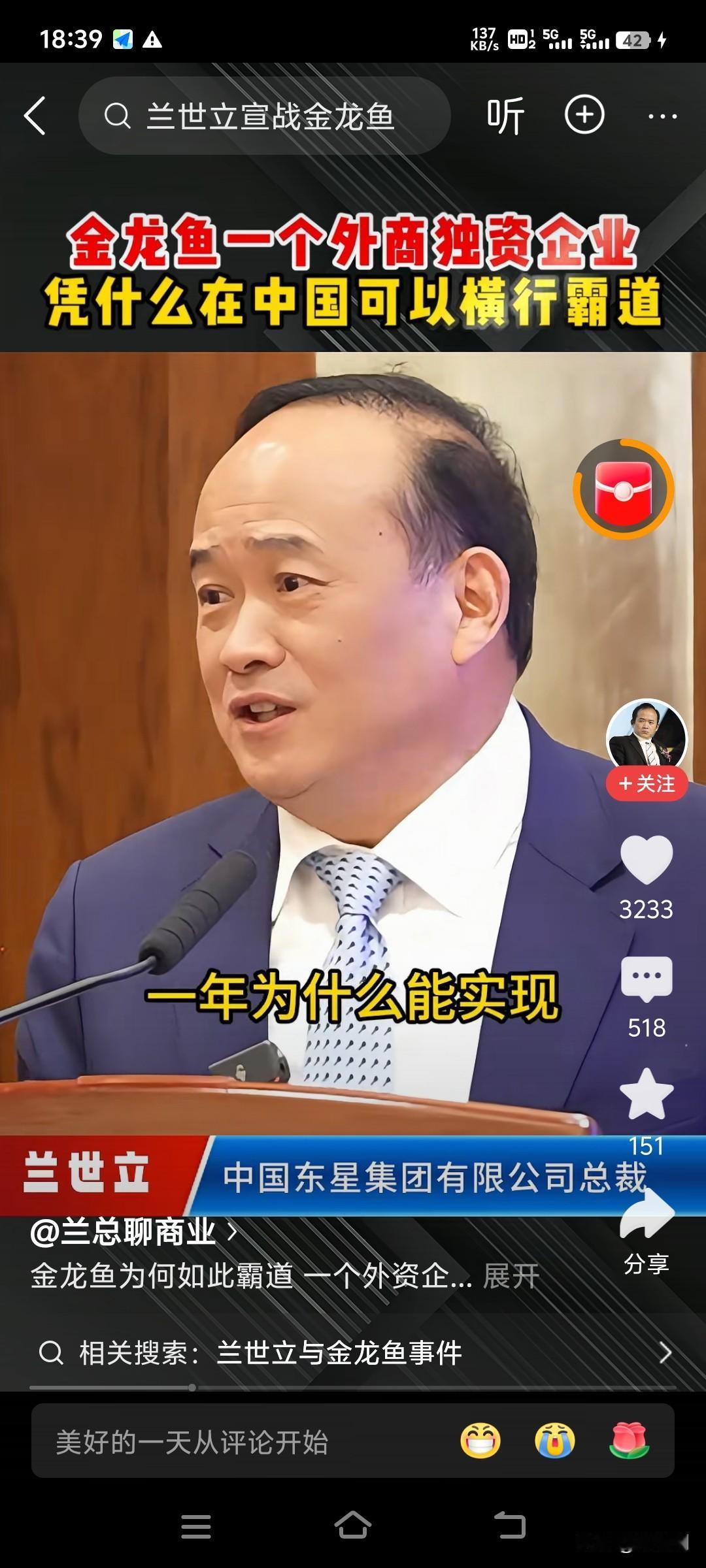 若不是兰世立提及,我压根儿不知道金龙鱼竟是外商独资企业。 每逢过年过节发食用油,发的都是金龙鱼,家里全是金龙鱼的油,还有两壶尚未开封。 听兰世立这么一讲,晚饭用金龙鱼炒的菜都没了香味,有没有和我同感的?