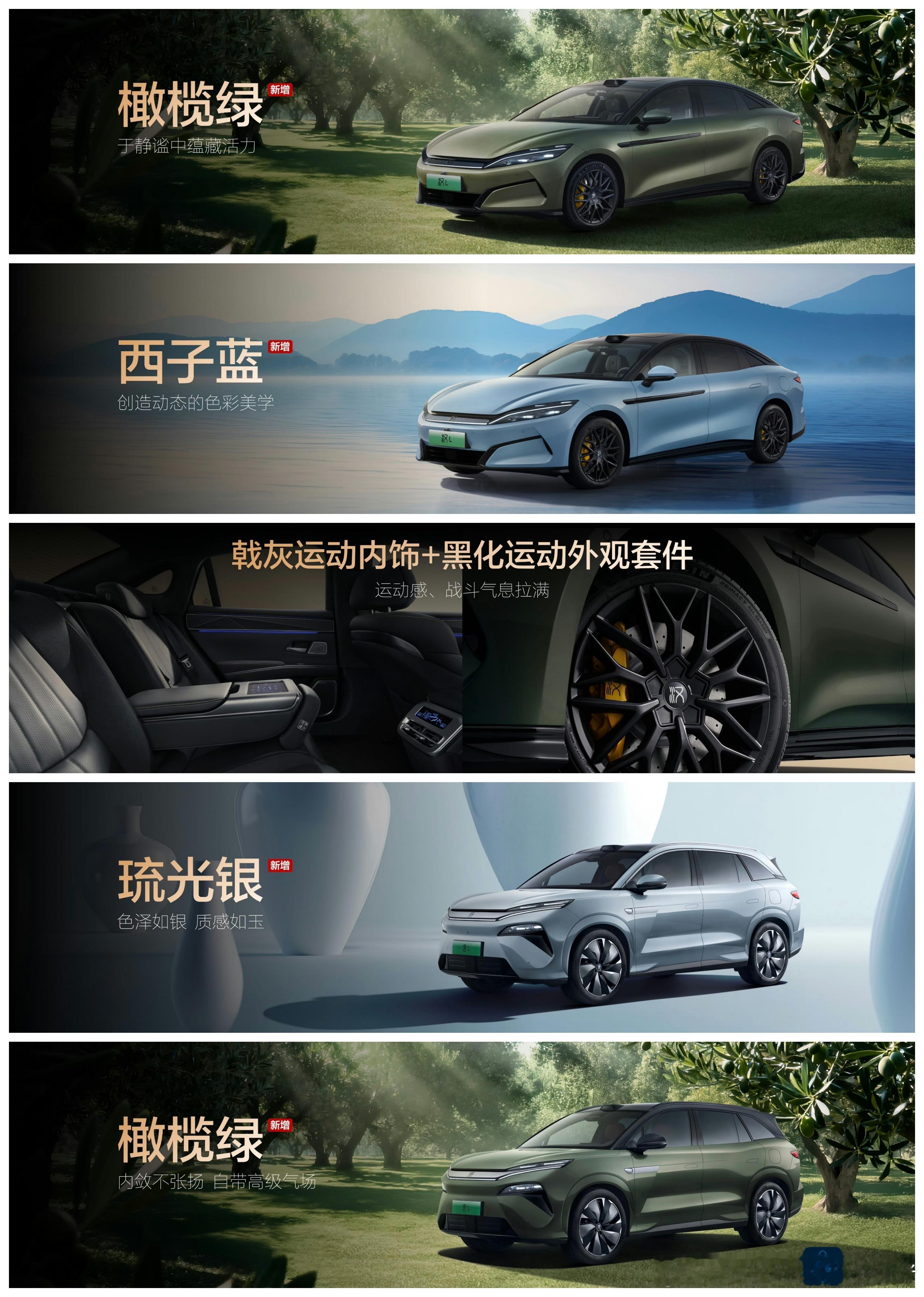 广州车展开幕,比亚迪汉L加推了两款新配色,分别是橄榄绿和西子蓝,大家觉得那个好看?这次增加了戟灰色运动内饰和黑化运动外观套件,那个轮毂是真的好看,限时2000元的价格倒是不贵,我感觉灰色没事挺好的,起码耐脏也耐看。