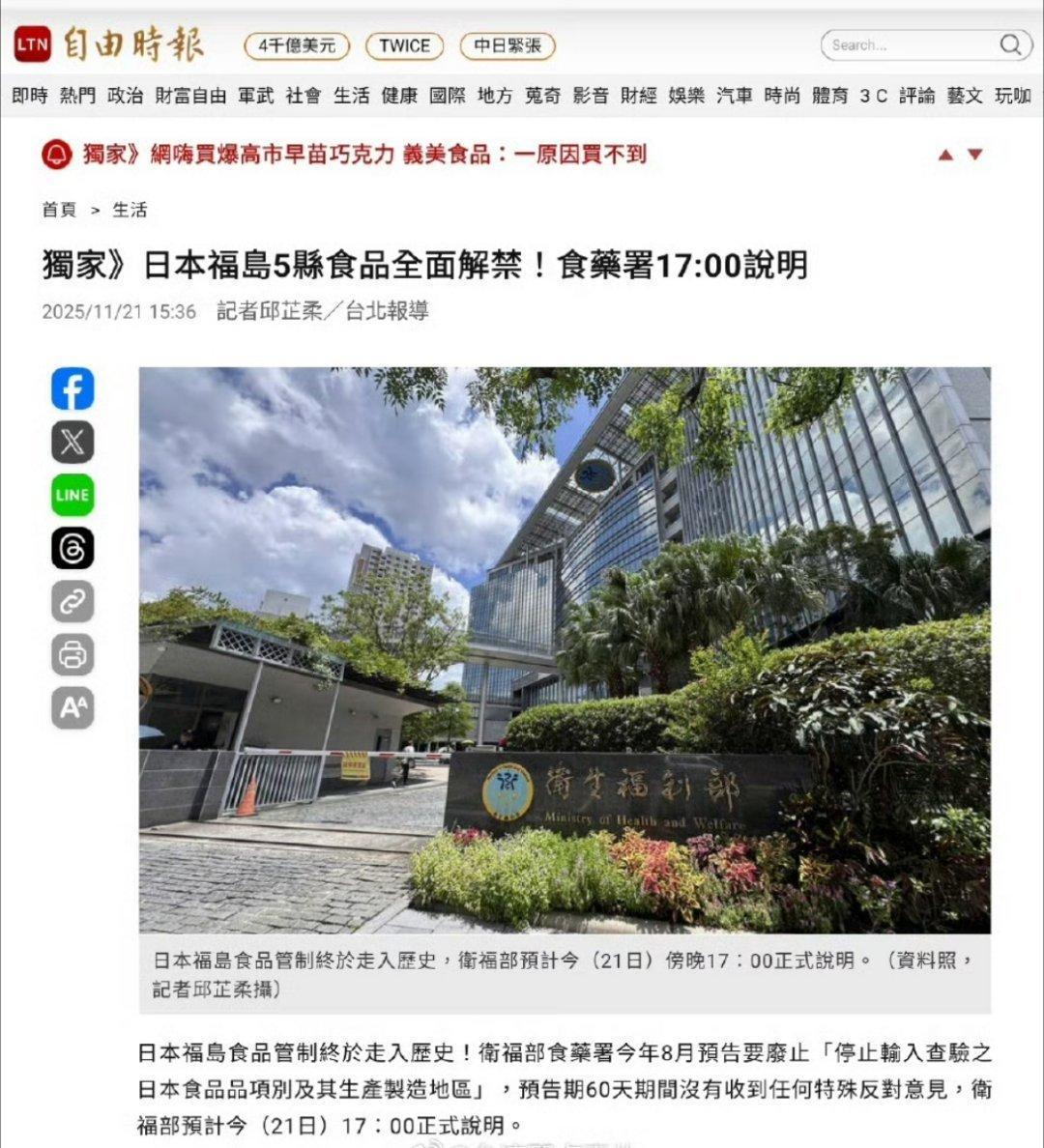 民进党当局对日本福岛食品全面解禁!民进党当局今天将宣布日本福岛5县市食品全面解禁,“食药署”17点将召开记者会。