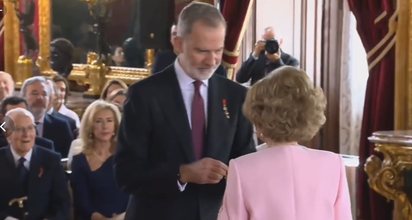 西班牙国王为母亲索菲亚颁发勋章!11月21日费利佩六世主持授勋仪式,并亲自为母亲
