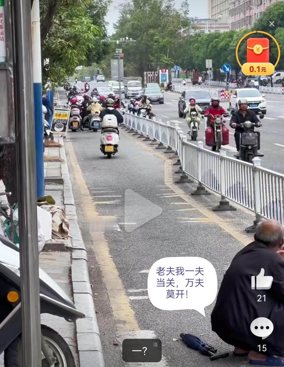 大爷往非机动车道一站,整条路都“瘫痪”了!🚲🛵 司机们好言相劝,大爷纹丝不动,眼神里写着“此路是我开”。过往车辆只能乖乖绕行,评论区真相了:“确认过眼神,这是惹不起的人…” 要不说你大爷还是你大爷呢?这气场绝了!路上那些事儿,有时候真让人哭笑不得。