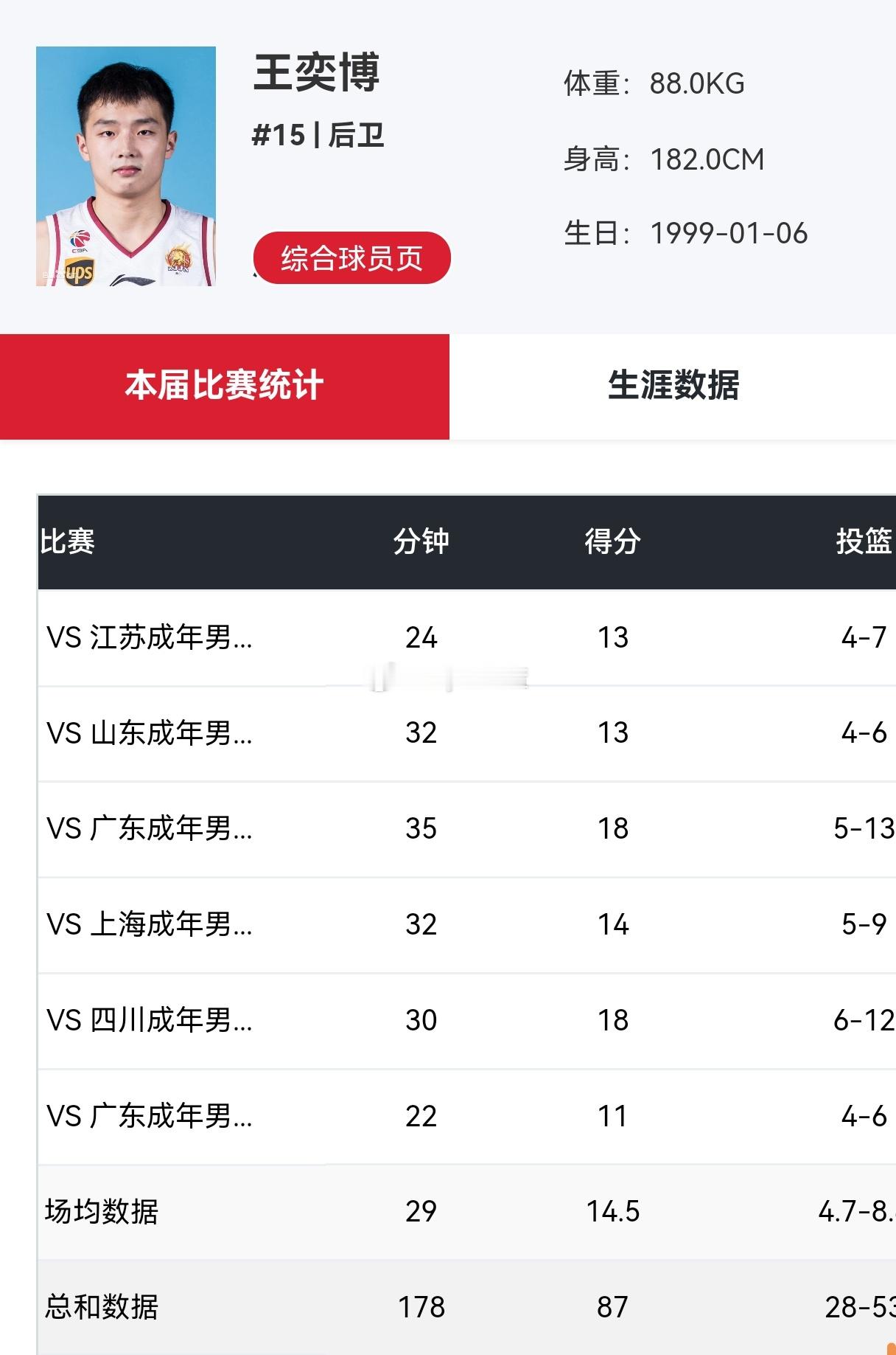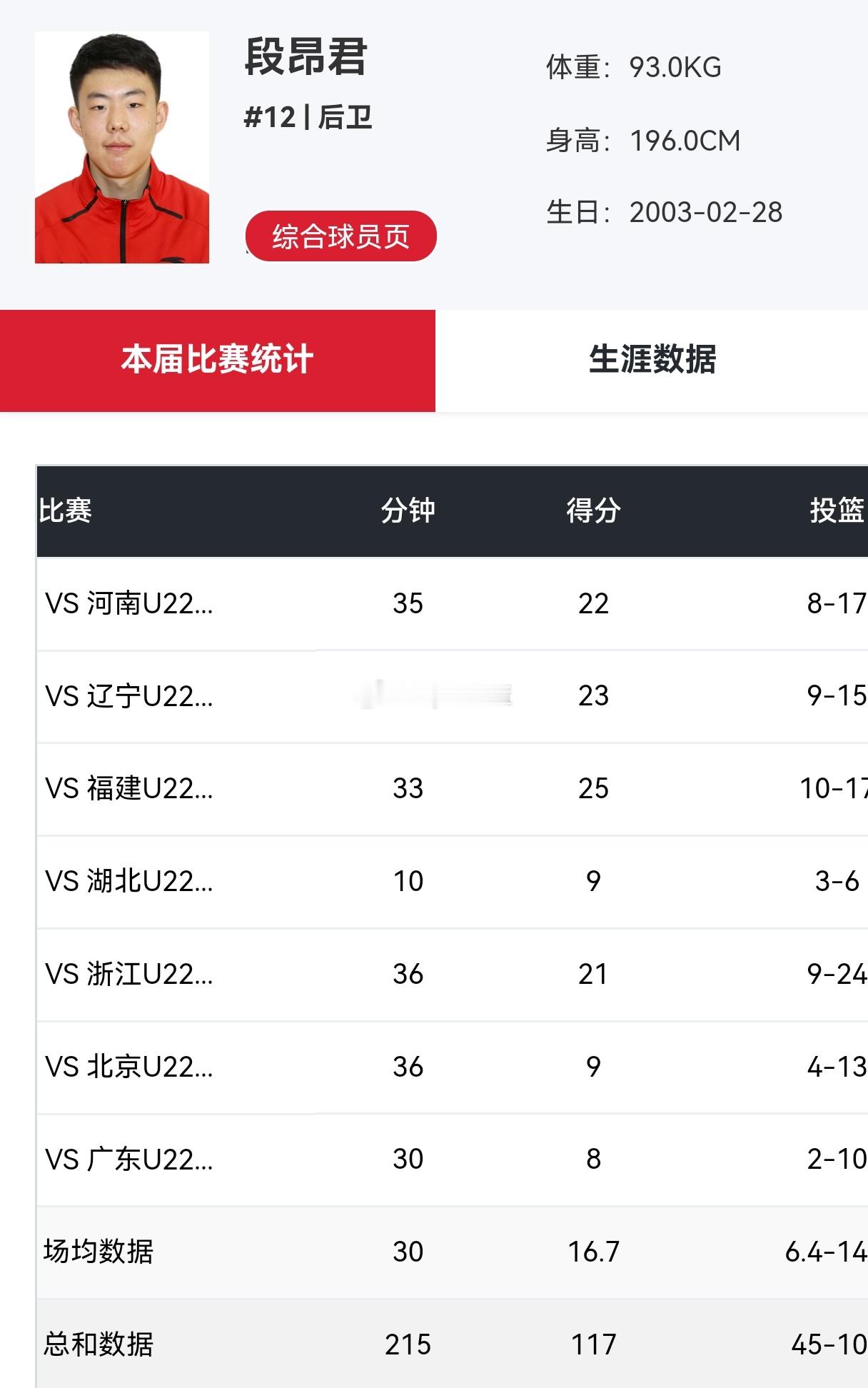全运会篮球比赛已经全部结束,青岛队球员共有6人出现在本届全运会的赛场,他们大多数都是各自球队的主力甚至是核心,像吕俊虎和段昂君在各自的球队中都扮演着无可替代的作用,我们简单盘点一下他们的表现: 成年组 :王睿泽场均23分钟,得到12.8分4.5篮板1.5助攻1.5抢断王奕博场均29分钟,得到14.5分1.5篮板4助攻1.2抢断吕俊虎场均36分钟,得到23.4分8.4篮板2助攻1抢断U22组 :段昂君场均30分钟,得到16.7分4.9篮板6.6助攻2.1抢断孙祥翔场均33分钟,得到11分4.6篮板2助攻U18组:李俊贤场均21分钟,得到6分5.6篮板2.1盖帽下赛季的青岛队虽然没有了杨瀚森这个内线核心,但球队贮备了米奇和汤普森两个在CBA证明过自己的内线外援,加之教练组和主力球员变化不大,外线王奕博的加盟让球队选择性更多,所以新赛季青岛队依然是季后赛的有力竞争者!
