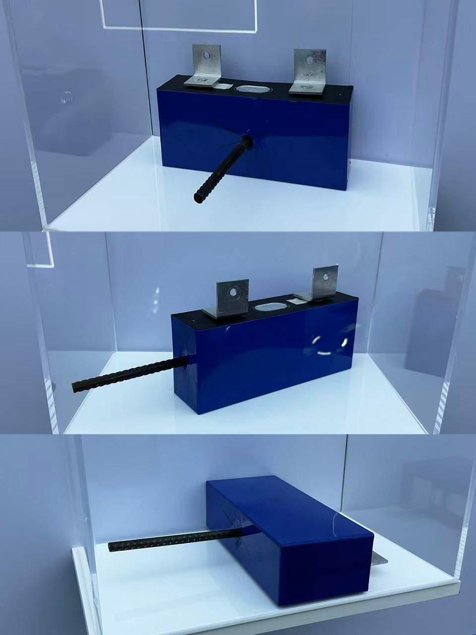 不得不说,新技术带来的就是代差啊。MG估计是为了模拟碰撞工况下更常见的电池形变,这个电池内脏都被挤出来了也没冒烟,我服了。螺纹钢似乎也比细针更具有实际意义,也是更极限的测试方法。