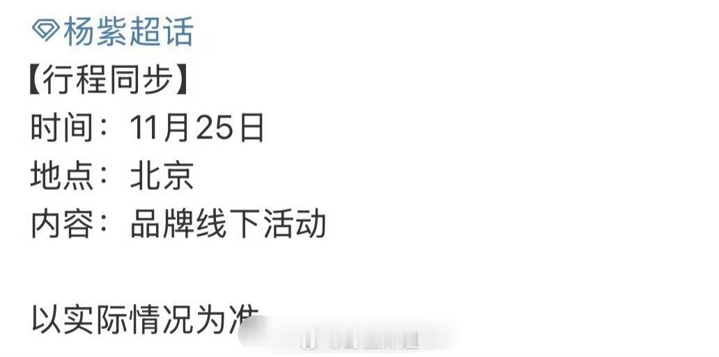 杨紫再过几天在11月25日就又有新的线下活动要出席参与,粉丝们就有福气了,可以直接去北京见到活灵活现的杨紫,杨紫的事业心是真的很强,除了拍戏就是出席各种活动