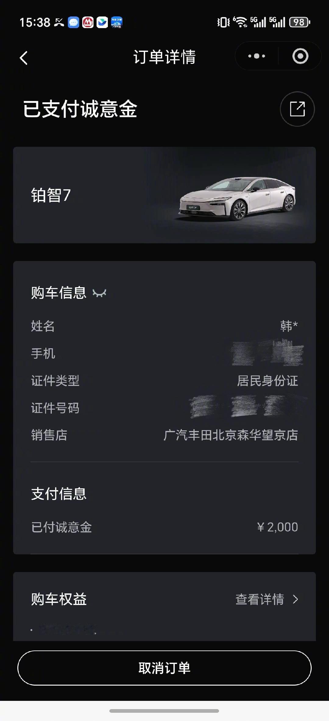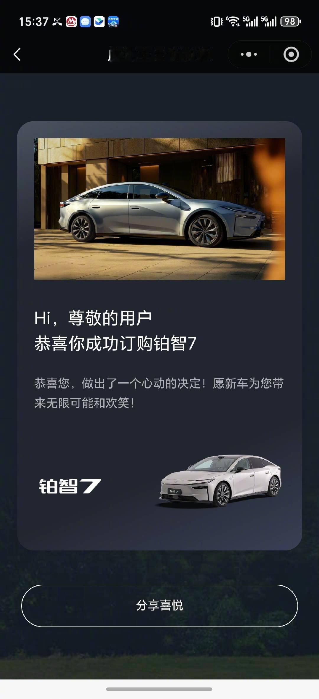广汽丰田全新推出的20万级纯电旗舰轿车铂智7,这是个非常猛的豪华轿车!超5米的尺寸,双腔空悬,鸿蒙座舱,零重力座椅,头枕音响,Momenta辅助驾驶,我详细的拍了视频明天发。 没想到广汽丰田还是很会造豪华车的,外观很有雷克萨斯LS的感觉,刚拍摄时候广东大哥们赞不绝口。内饰全都是真木头的饰板,鸿蒙座舱非常顺,也智能,座椅配置高、舒服,完全不像是以前丰田车的样子,更像雷克萨斯,它的豪华是能静态就感受体验到的,不愧是豪华旗舰。这年头合资车想通了之后进步飞快,非常迎合中国消费者胃口,另外广汽丰田现在对于新能源车的政策非常好,元旦前预定厂家除了承担明年要缴纳的购置税,厂家还承担自燃责任、承担智能泊车事故的责任,承担电池衰减的责任,在行业内也是很领先的存在,消费者买着也放心,现在就是期待铂智7的价格,看看是否有惊喜。 最后,我也预订了一台,大家说我买什么颜色好?