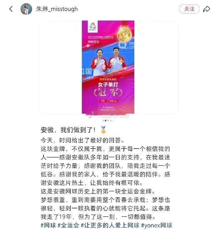 朱琳的每一拍都藏着不放弃的倔强。深夜发文致谢,是她对 “砸锅卖铁” 培养她的安徽队最赤诚的回馈。而一句 “想吃爱吃” 的率真回应,又让我们看见冠军卸下光环后最纯真的模样。