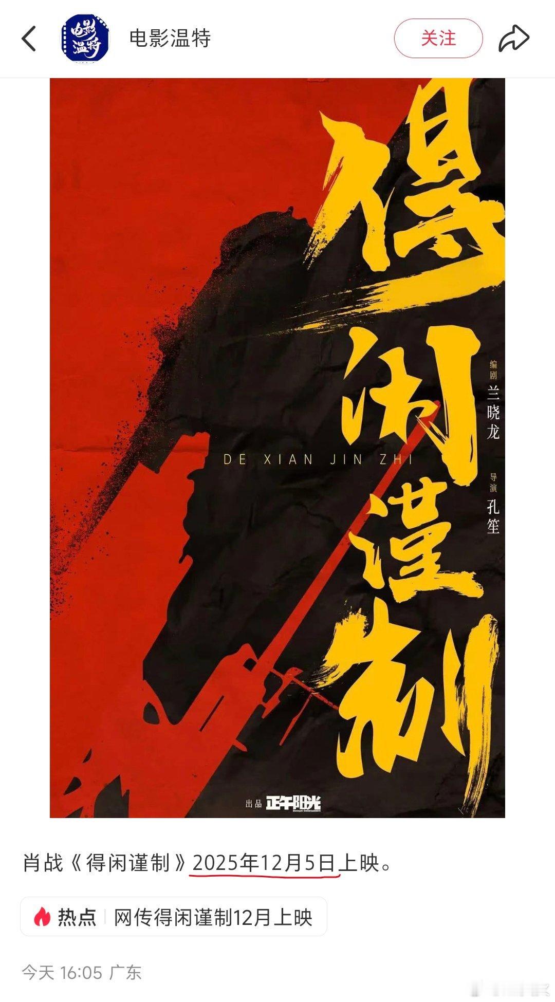 网传得闲谨制上映是12月5日?迫不及待想看 官微官抖都开通,应该就要开始宣传了