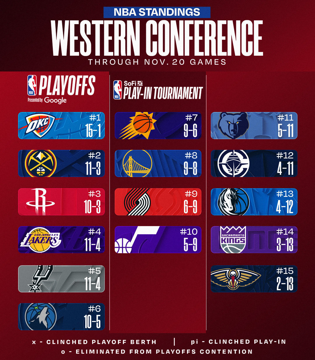 马刺战胜老鹰,战绩与湖人同为11胜4负。明天火箭大战掘金,湖人有望排名上升一位。