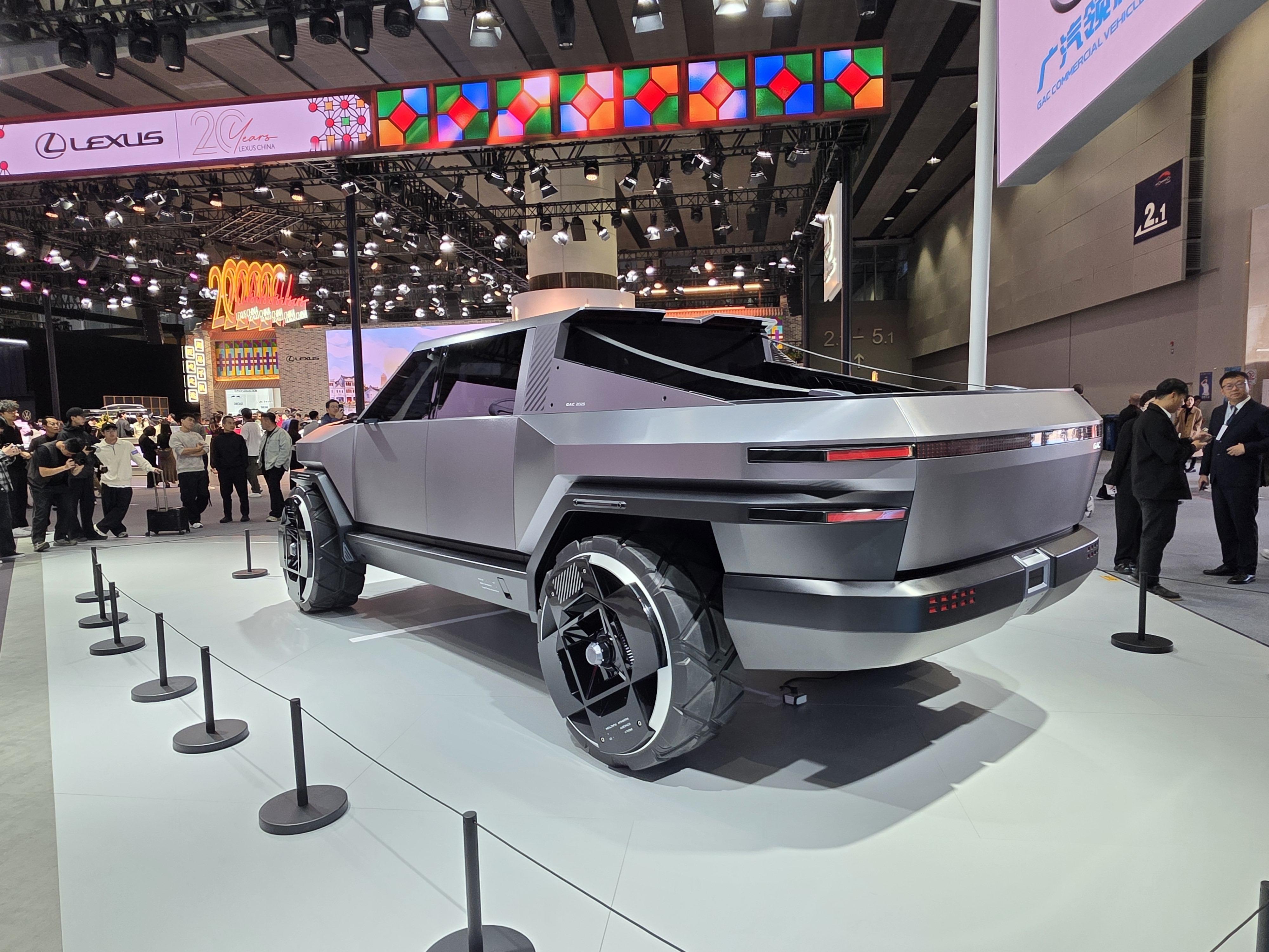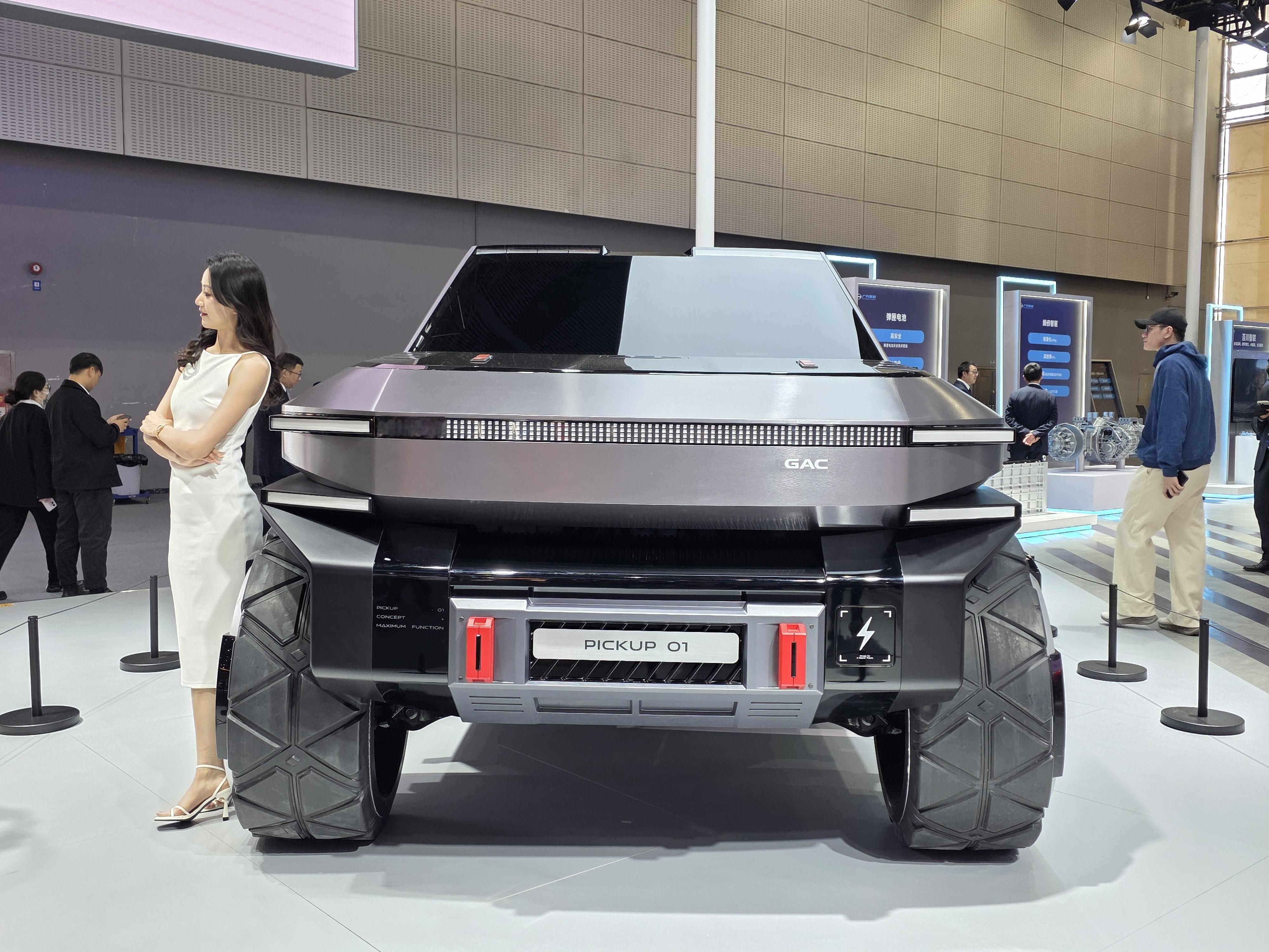 小明说科技带你逛 第三弹——广汽领程!一眼看到广汽领程GAC PICKUP 01被深深震撼,一身机甲设计风格,是不是很炫酷很有未来科技感,贯穿式一体行车灯和分体式大灯组合设计,门把手和后视镜都是隐藏式的,不仔细看还真发现不了。话说这样式的国产赛博皮卡,你们会喜欢吗?