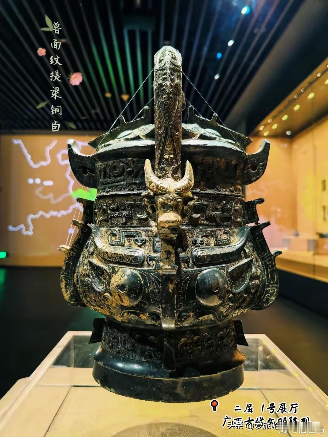 1974年1月19日,广西武鸣县马头公社全苏大队第一生产队农科组的几位社员在该村附近的逸岭东南坡挖掘修建贮粪池,随着农民大哥们手中的锄头上下翻飞,泥巴地面突然出现了一些青绿色的金属物质。大家把这个青铜罐慢慢挖出后拿到水沟空清洗干净,发现这罐子不仅有漂亮的纹饰,还泛着晶莹的色泽,猜想它一定是宝贝,所以立刻将它送往公社革委会。公社革委会立即拨通了县文化局的电话,县文化局马上电告自治区文化局。第二天下午,广西自治区博物馆的专家就赶到了罐子出土现场——位于大明山东南麓的武鸣县。随后专家们还在土坑里挖出了一件青铜戈。经鉴定,这两件器物都是商朝晚期的珍贵文物。这还是广西地区首次发现商朝的文物,在当时引起了不小的轰动。可能当时挖地的农民社员和专家们都没有想到,“用锄头歪出来的”这件精美青铜器——商晚期饕餮纹提梁卣,不仅成为了广西自治区博物馆的镇馆之宝,还开拓了3000多年的中国酒文化研究范畴,具有非凡的意义。我只想说:老祖宗,你们喝酒真的很讲究,光是酒器都五花八门的,今天我又碰到了一个之前从没见过的古代酒器,甚至连名字都有点生僻。是不是大家和我一样都不认识“卣”这个字,我还差点看成了“卤”字,幸好没有闹出笑话。提到生僻的“卣”,其实是一种最初流行于商周时期盛酒器,和我们比较熟悉的尊、罍一样,都是当时用来装酒的一种容器,但是它装的还不是普通的酒,皇家贵族用它来盛酒,只可能是高档酒。来来来,大家一起学知识,看官方的展板,这个“卣”读yǒu,意思就是“古代盛酒的器具,口小腹大”。看到如此精美奢侈的盛酒器,肯定不是普通人可以使用的,一定是皇家贵族。我甚至都在胡乱猜想,当年的商纣王是不是与妲己就用的这个精致高档“盛酒器”。青铜卣最早出现在商代早期,盛行于商代晚期和西周早期,西周中期之后渐渐消失。受商朝人尊神重鬼观念以及重酒风气的影响,卣成为各种大型祭祀礼仪中不可或缺的重要礼器。《诗经·大雅·江汉》中记载“厘尔圭瓒,秬鬯一卣”。这个秬鬯(jù chàng)就是中国古代的一种高级香酒,用黑黍和郁金草酿造而成。在商代鬯酒的基础上,西周在建立之初就确立了秬鬯作为国酒的地位,有点类似于今天的茅台或者五粮液。但是这样的国酒也不是每天都可以喝的,毕竟那时的物质条件有限,通常在国家的典礼、祭祀、封赏、赏赐功臣宴饮等场合才使用。有一种说法,中国的酒文化就是起源于商朝,而这件饕餮纹提梁铜卣就是最早的“活文物”,更是一件不可多得的精品酒器。发掘之初,可能没有人它会成为广西地区最早最高等级的青铜器,居然揭示了这么多背后的信息和研究成果。饕餮纹提梁铜卣有明显的中原特征,却在了中原王权覆盖范围较远的广西地区,学过历史的都知道,商王朝的疆域范围并不包括广西。那它为什么会出现在广西地区呢?其实,目前仍然还没有定论,专家们也还在论证过程中。