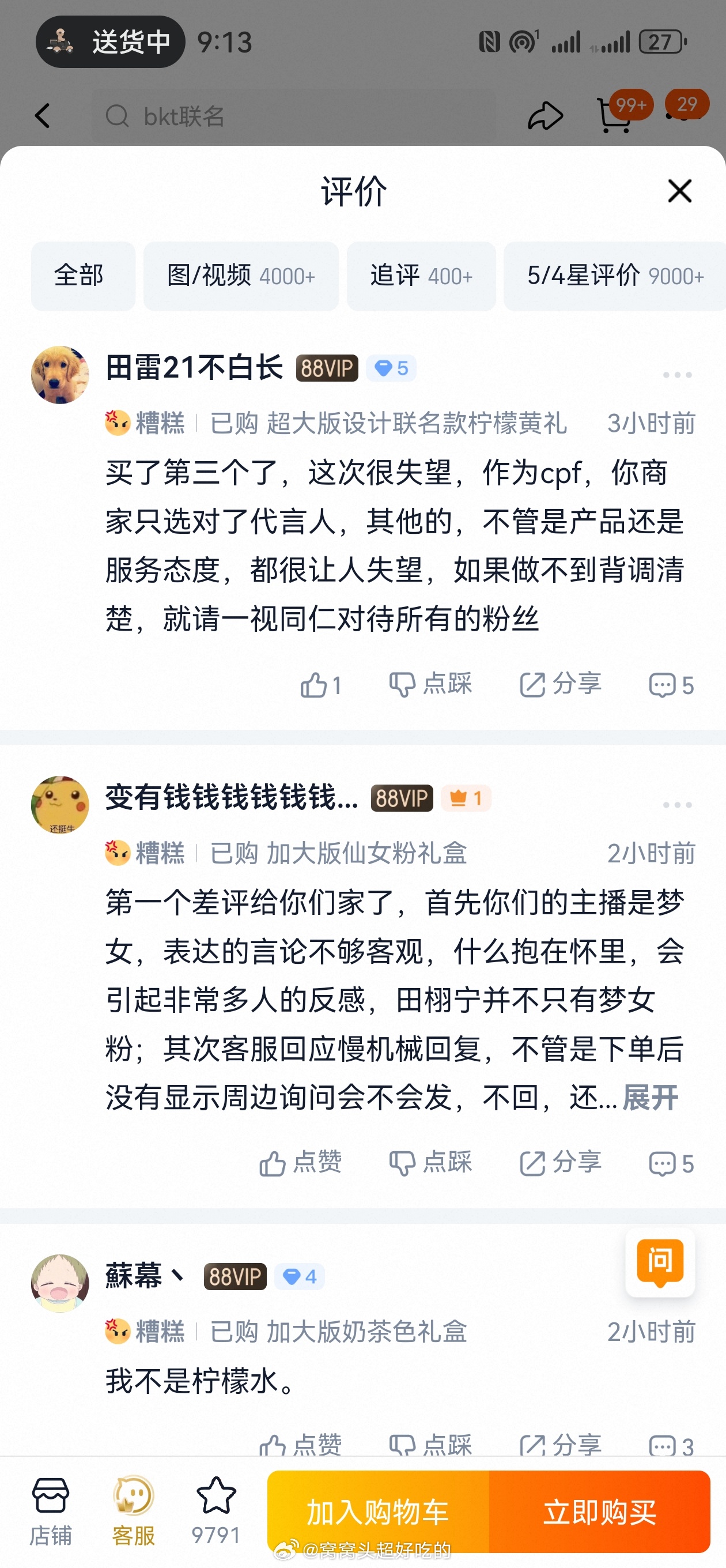 玉米棒子突发恶疾跑去给甜雷sw差评就因为品牌方设计了柠檬黄的坐垫..昨天自己看错抽奖的骂人家也没道歉 一直在害雷子