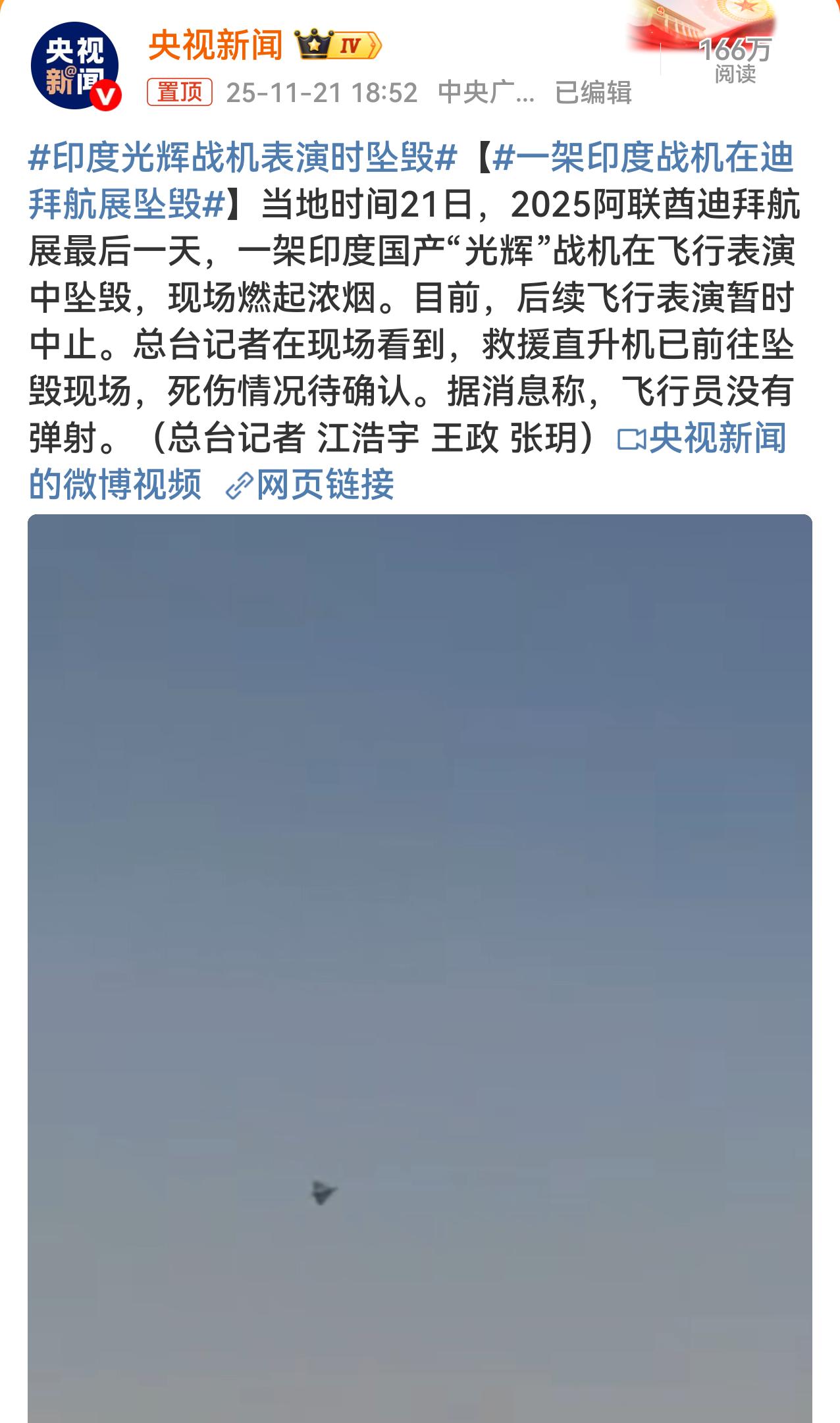 印度光辉战机在表演时坠毁。在事故发生前一天,一个印度的所谓军事专家,发帖嘲笑巴基斯坦用的枭龙是山寨中国的飞机,把印度的光辉战机吹上了天,结果光辉刚上天就坠地了。事故发生后,他发了个“心碎”的表情,看来受到的打击挺大的。