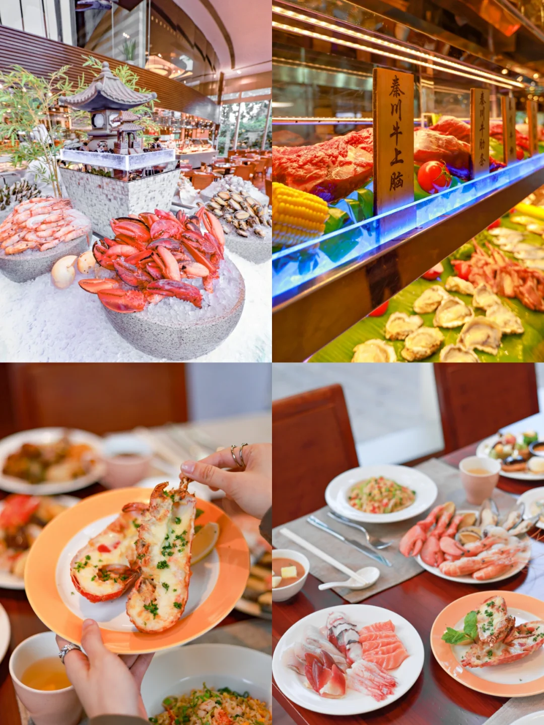 💁广州香格里拉的美味何至于此,妙趣咖啡厅的晚餐自助选择更为丰富:手掌大小的芝士焗波士顿龙虾了、新鲜的三文鱼、北极贝刺身、还有香煎秦川牛扒让人食指大动。还有16种色彩缤纷,入口香滑的低脂雪糕让我欲罢不能,制作甜品的甜品师也是荣获国际大奖的,怪不得这里的甜品吃上一口就让人不能自拔了。