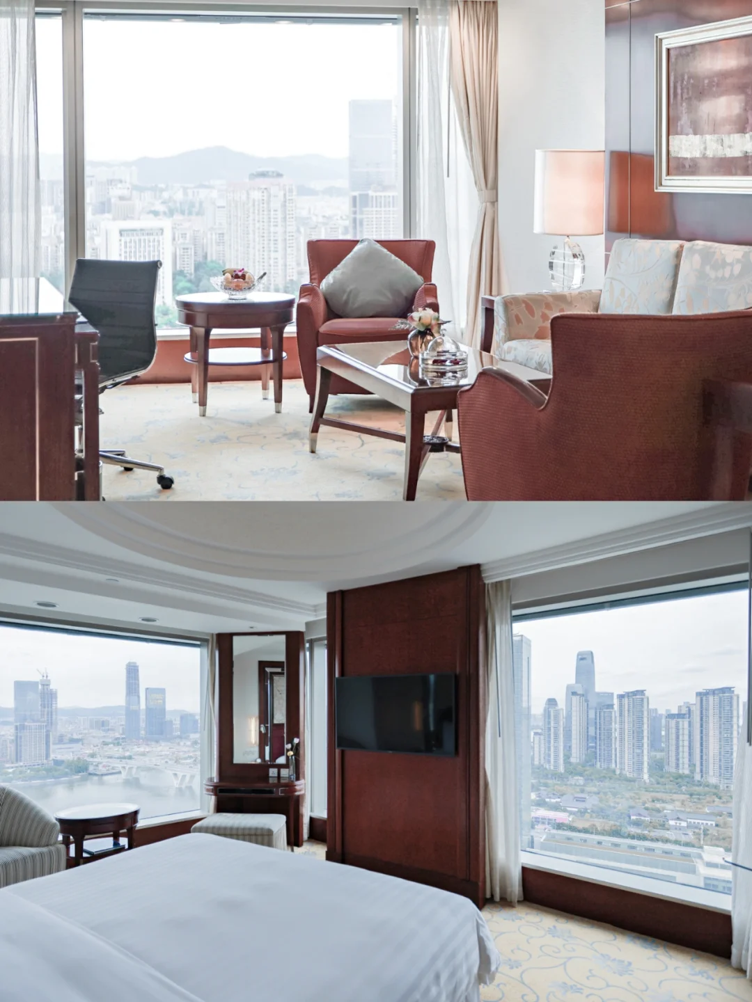 👨👩👧本次入住87平方米的行政套房,透过两扇落地玻璃窗,可以饱览珠江两岸风景,小蛮腰,海心沙,海心桥风景尽收眼底。入住行政套房附送豪华阁贵宾廊权益,可以在休闲时体验这里的饮品和小吃,还有管家式的贴心服务和安排。
