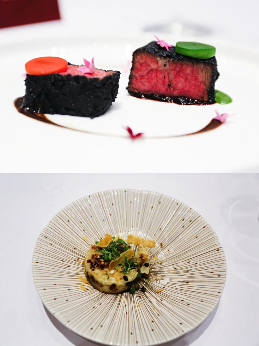 这道菜借鉴了粤式腊味煲仔饭的做法,结合了西班牙火腿、乌鱼子、櫻花虾等食材让其卖相变得更好看而有食欲,而米饭的出现也预示着品鉴会进入尾声。