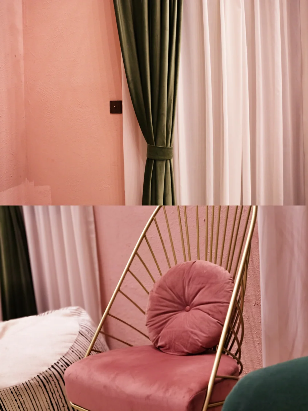 🎀民宿的大堂采用天蓝色布置,仿佛走进了舍夫沙万乐山分万。而通向客房的走廊则是少女感满满的粉红色🌸。民宿内16间客房各有主题,这次选择了同为粉色系的粉黛房。