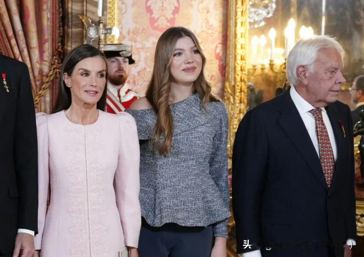 索菲亚公主在金羊毛勋章仪式上的穿搭,上衣来自塞尔维亚品牌Vogana,淑女气质!搭配大卷发青春气息浓厚!