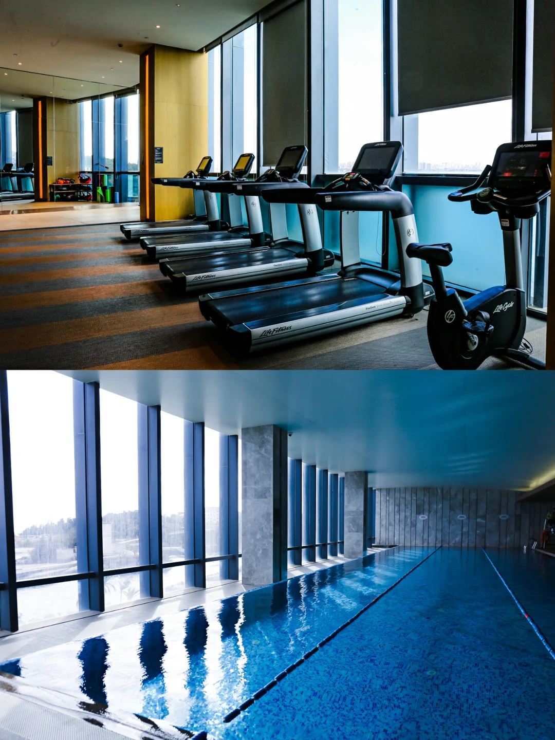 🏃作为健康生活者,爱吃美食之余也不能忽视运动。酒店的康体中心位于酒店三楼,包括健身房和泳池两个区域。最爱游泳🏊🏻的我当然不会放过这个体验机会。泳池区包括了一个三泳道的室温大泳池,一个温水儿童池和一个温水按摩池。这个天气游泳室温微凉,入水游开体感刚刚好。