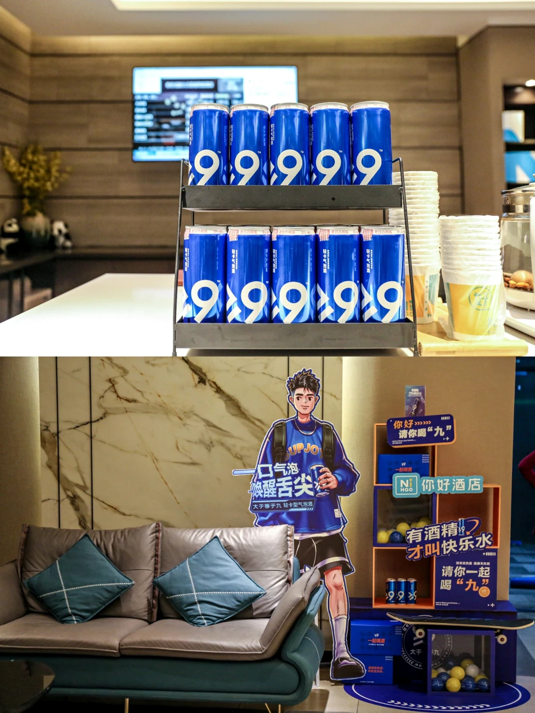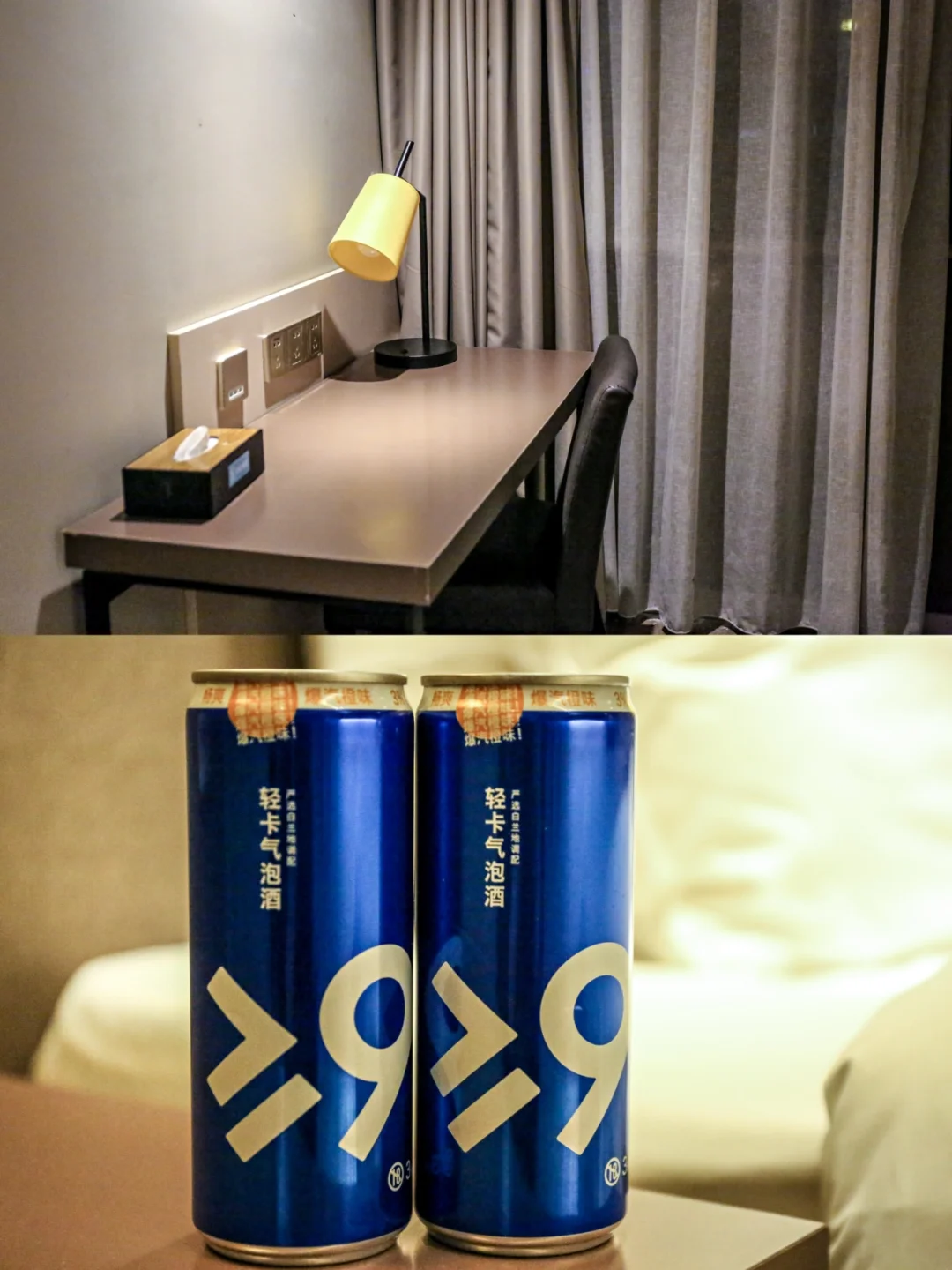 👉现在你好酒店和大于等于九的联合活动,入住即获赠大于等于九,宵夜点一份外卖串串搭配上气泡萦绕舌尖的感觉,就是成都最巴适的味道。