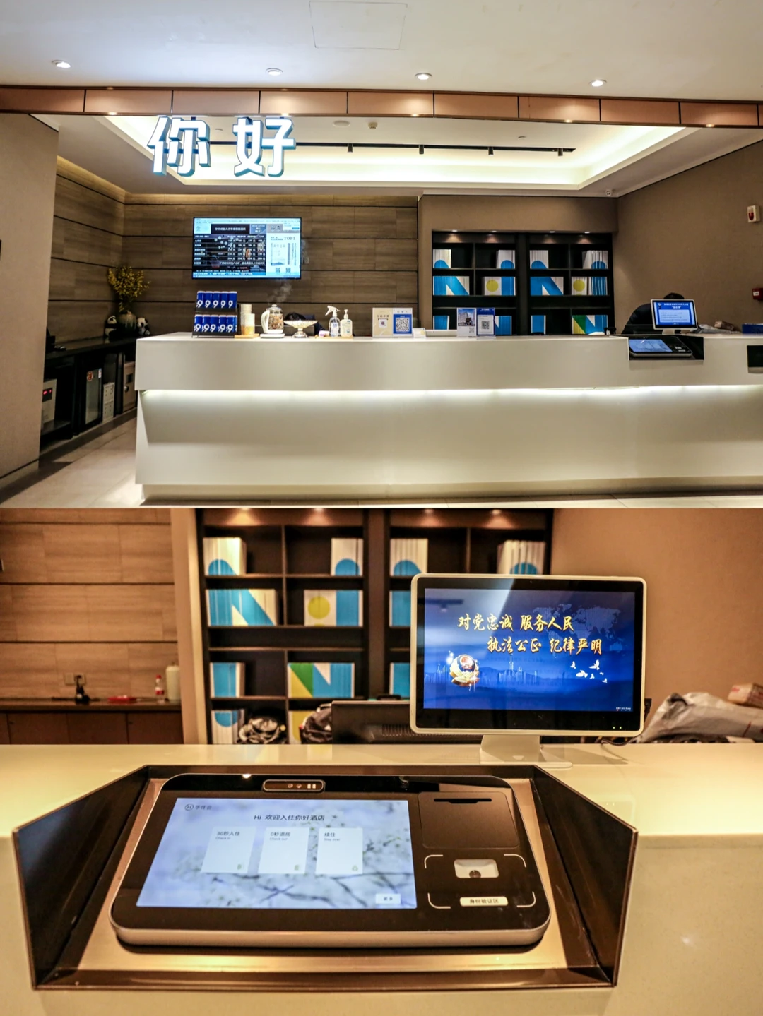 🌟酒店设计简洁而时尚,满足新青年简约而不简单的审美品味。大堂内的自助办理入住系统和自动送餐机器人很是新颖。