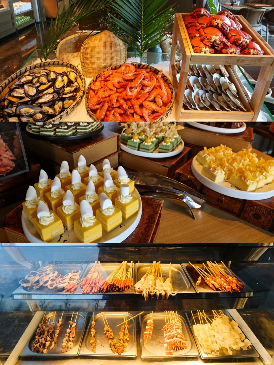 🌟酒店一楼的北岸全日制餐厅,晚餐自助独具特色。在这里可以品味到新鲜的海鲜,刺身,牛扒等丰富食材的同时,在这里特别推荐大家尝试一下独具特色的现做炭火烧烤,食材新鲜火候刚好,带着淡淡的炭香味非常好吃。