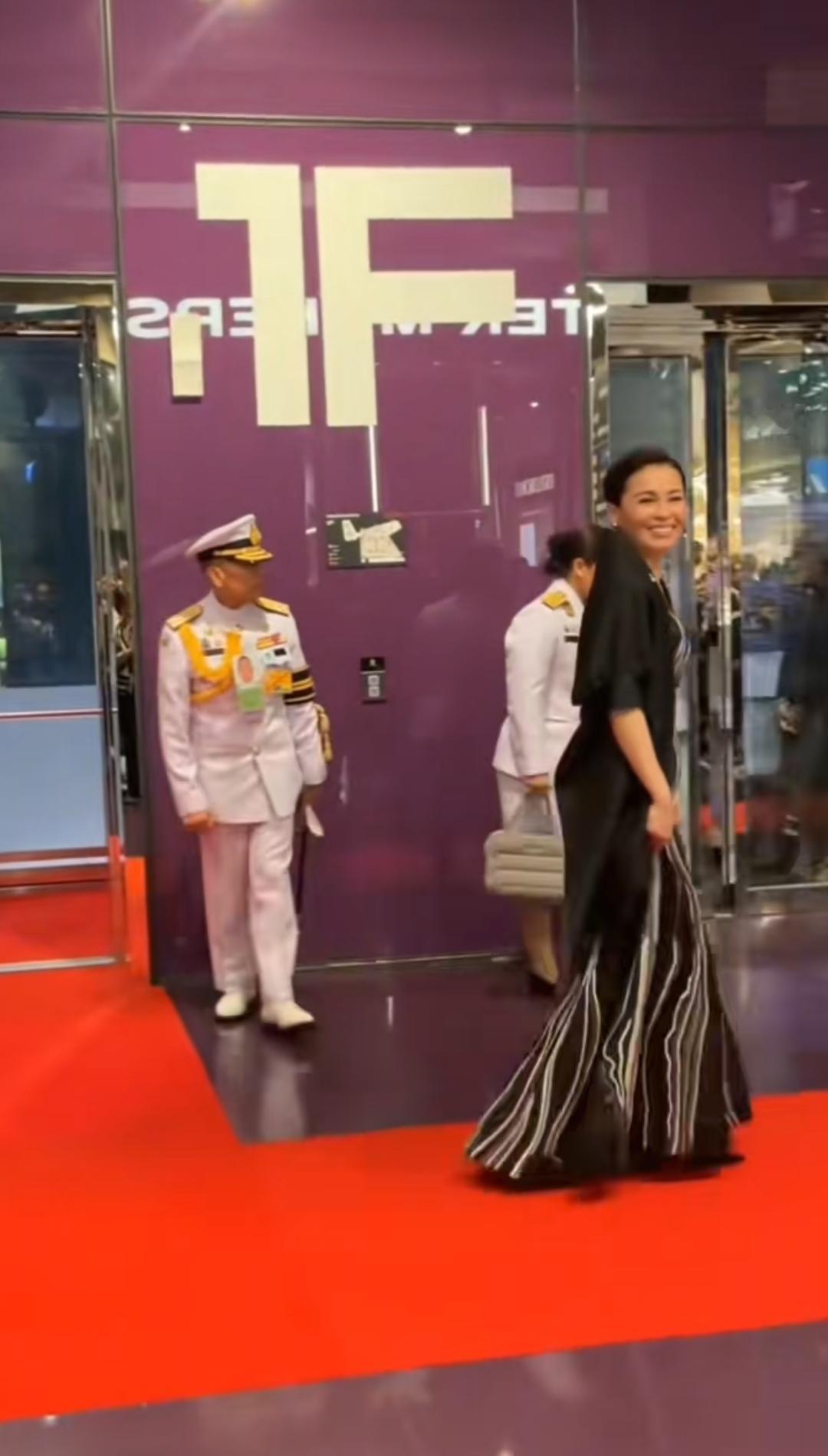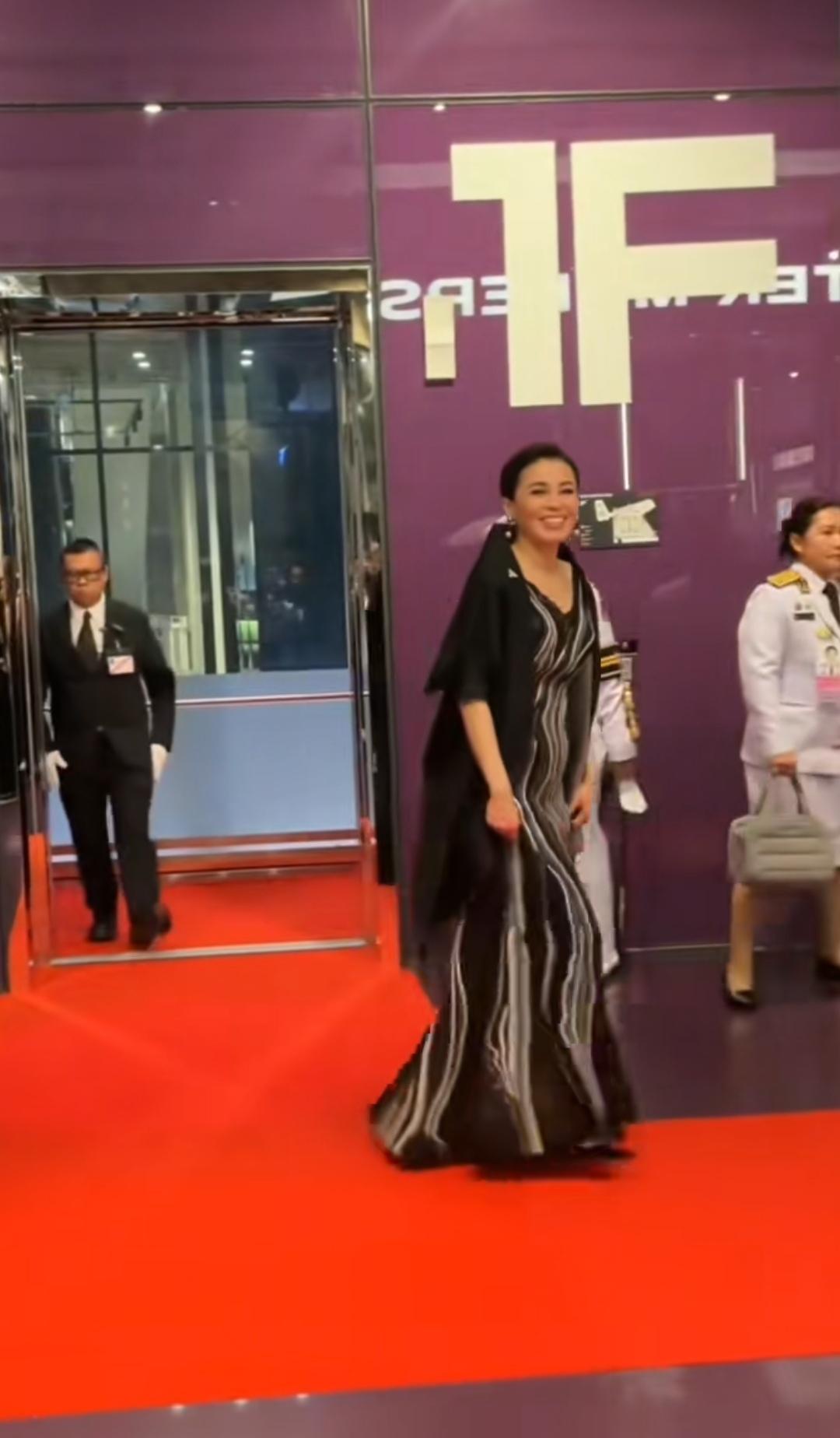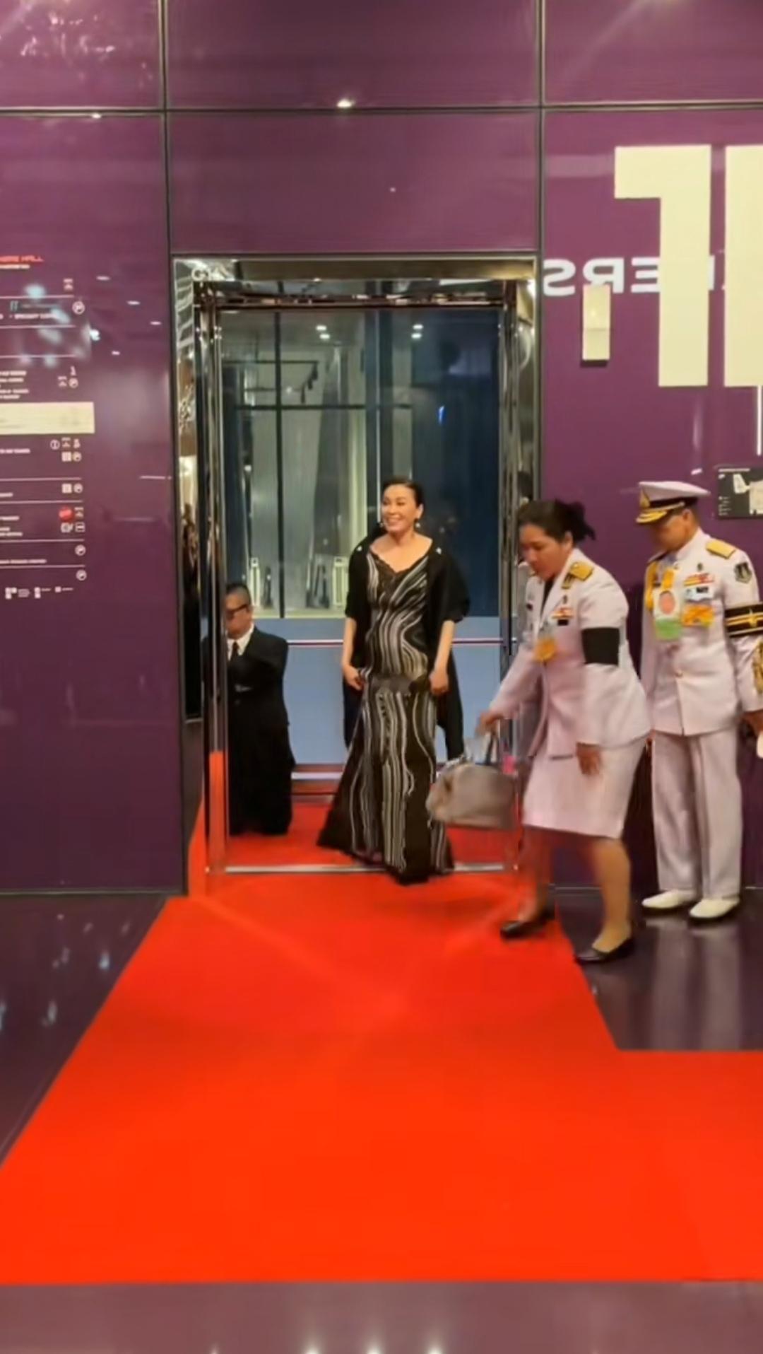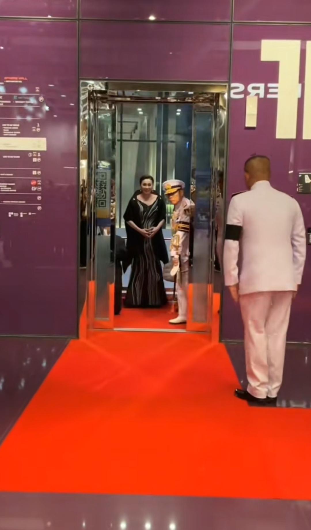 11月21日,苏提达回国后,出席的公开活动,穿着再一次让人眼睛一亮,说她是时尚女王,一点不夸张。 苏提达坐电梯的时候,有3名工作人员陪同,有一位工作人员跪在电梯内,专门负责按电梯,电梯内铺上了红毯,店梯口有人迎接。 苏提达穿了一身黑白相间得连衣裙,披着黑色披肩就出来了,地上铺了红地毯,苏提达穿着黑色高跟鞋走进活动场所,对迎接她的人微笑。