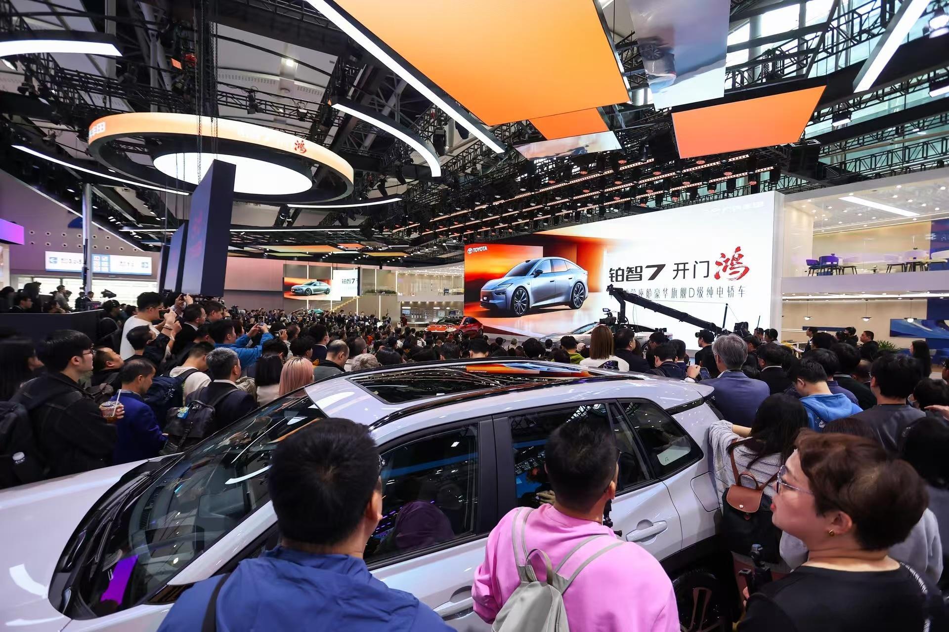 广州车展广汽丰田展台人气也非常高,全新亮相的铂智7很受欢迎。合资车企首款搭载华为鸿蒙座舱5.0的纯电车型,并且配备激光雷达,支持智能驾驶辅助。还越级搭载双腔空气悬架等高端配置,合资品牌在新能源赛道上也十分有竞争力。铂智7目前已正式开启预订
