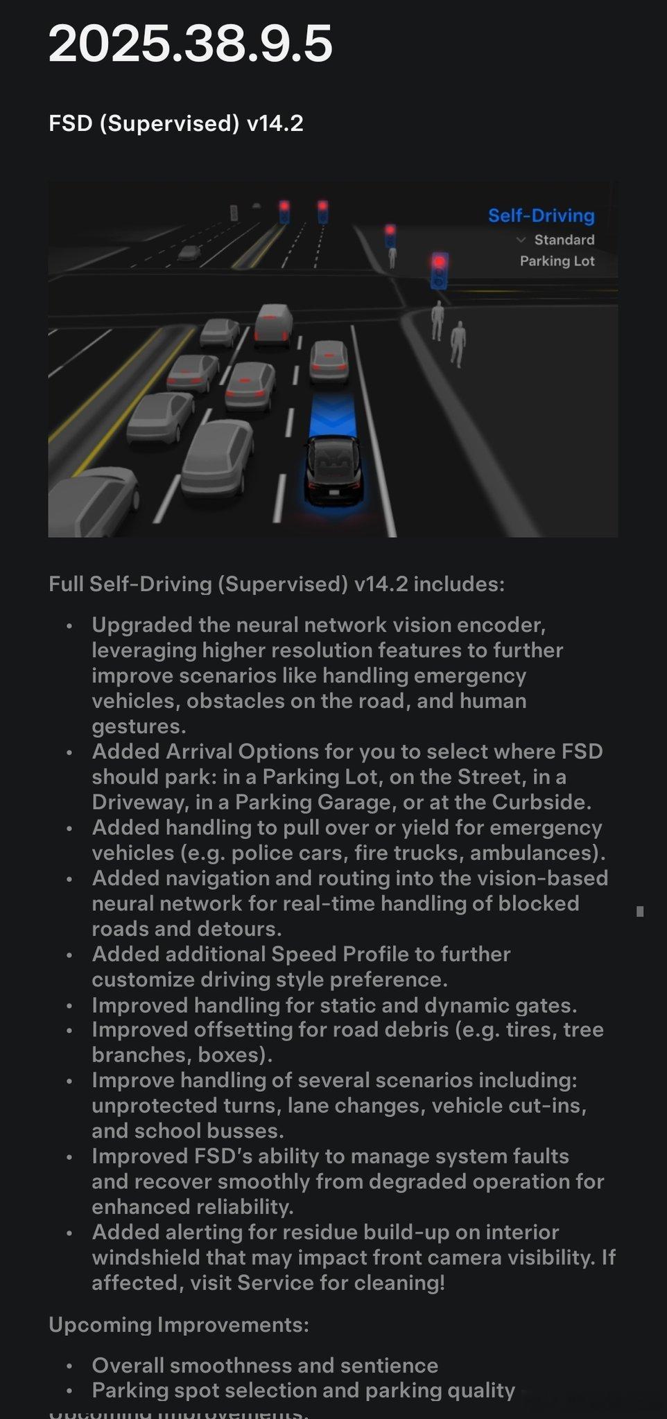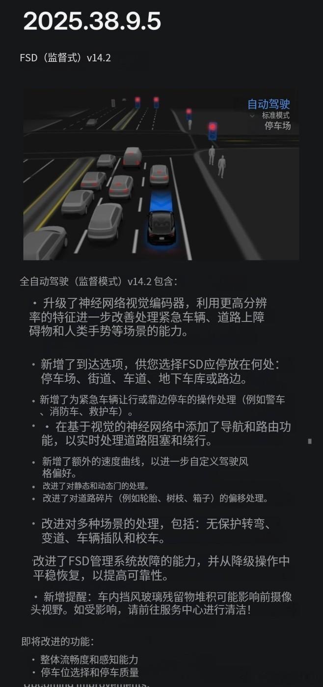 太快了,V14.2也来了……升级公告也提到了:提升了神经网络视觉编码器,利用更高分辨率的特征进一步改善处理紧急车辆、道路上障碍物和人类手势等场景的能力