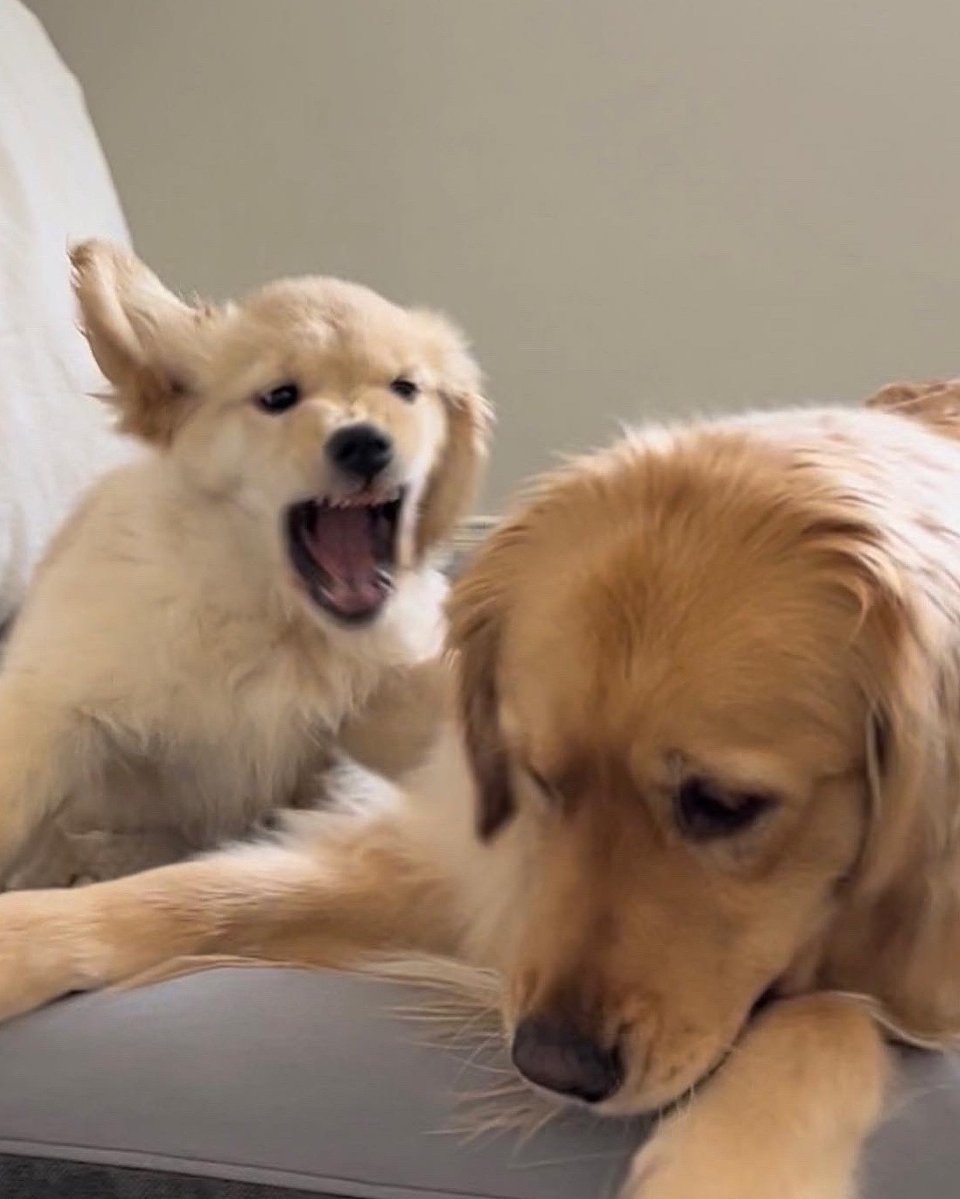 大狗牵小狗,走路不怕滑
